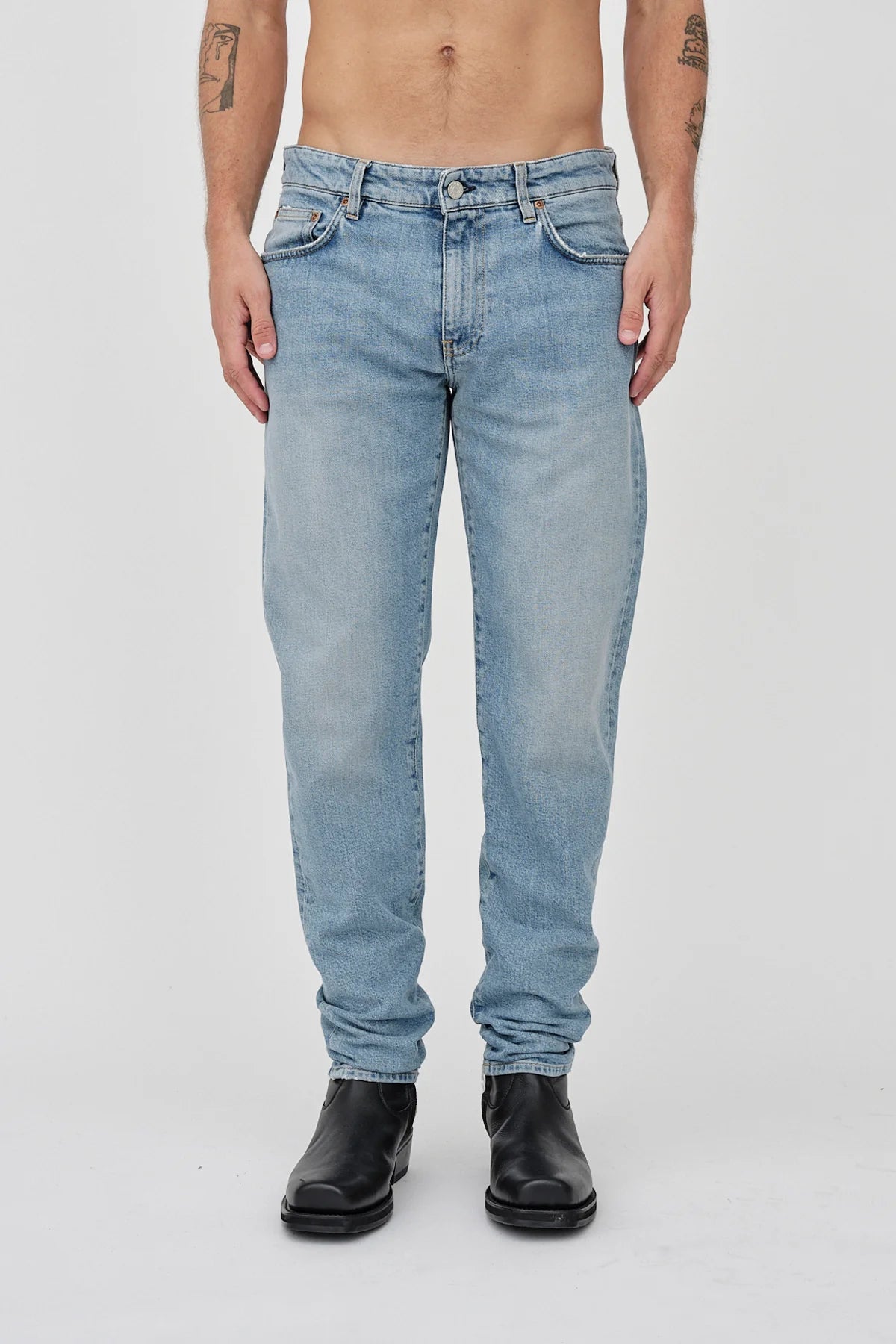 Dean is a pair of classic slim-fit jeans with mid-waist, zip fly, and slim leg. The jean's construction comes with five pockets and five belt loops. Features branded logo buttons and rivets, leather labels, and our signature dart on the back pockets.