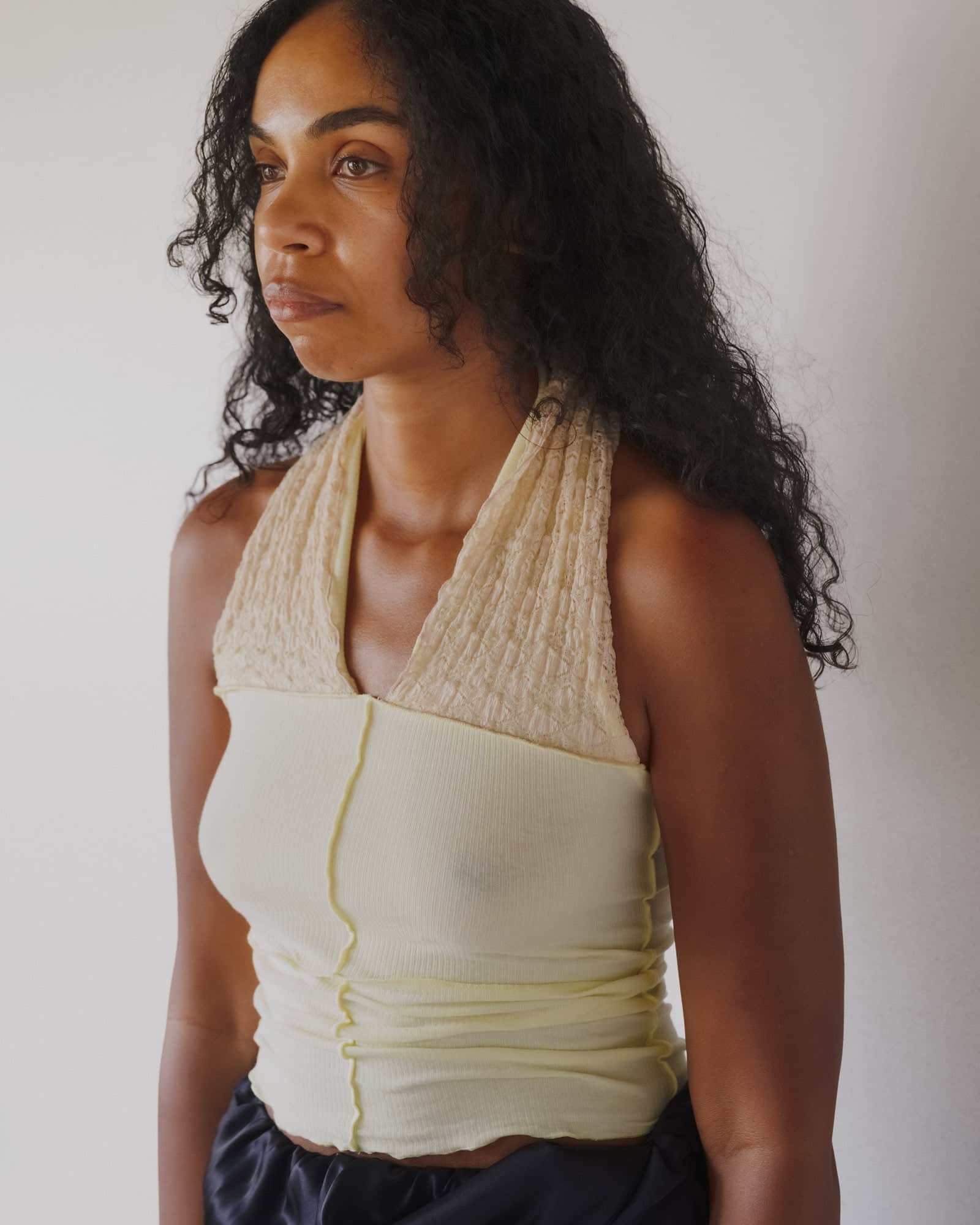 Lace halter detail at neck