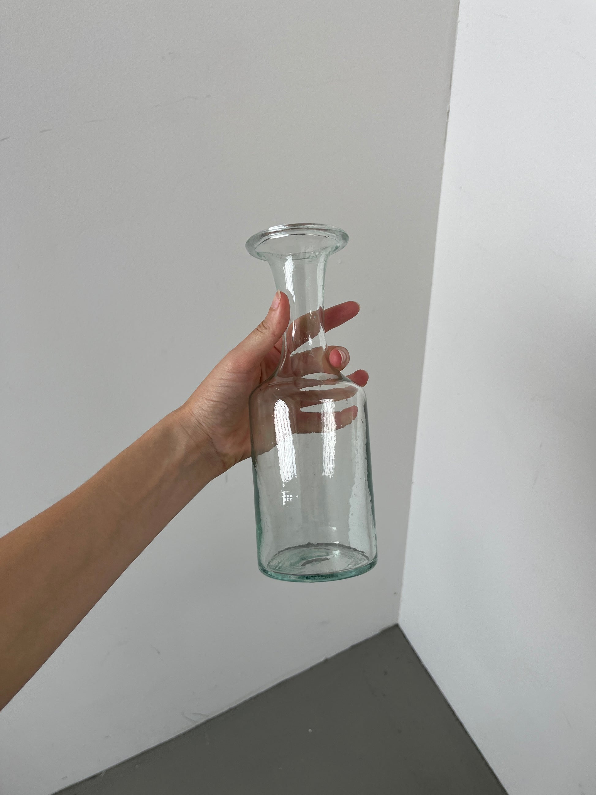 With its slender, elongated neck that gracefully flows to a slightly flared lip, the Alisha carafe captivates with its unique silhouette and refined design. Whether used for serving water, wine, or your favorite beverages, this carafe adds a touch of sophistication to any table setting, making it perfect for both casual gatherings and formal occasions. Mouth-blown from recycled glass and crafted by hand, Alisha showcases the timeless allure of artisanal glassblowing techniques.
