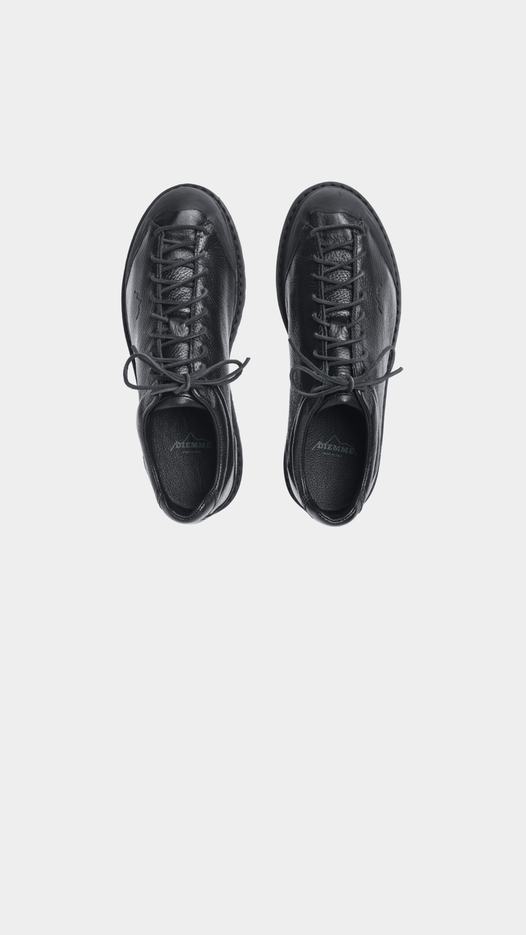 Ampezzo is an elevated low-top boot, with a clean yet adventurous hiking design. Inspired by a hybrid of the Cornaro outsole and Movida upper, its uniqueness lies within the refined aesthetics where the hardware has been extracted. Making it not only a cool and sleek hiking shoe, but also an excellent option for formal attire. The Italian deer leather comes in a black colorway, with a protective rubber mudguard in a ton-sur-ton palette, resting on a sturdy platform outsole. The leather lined latex insole provides ventilation and extra comfort in warm conditions.
