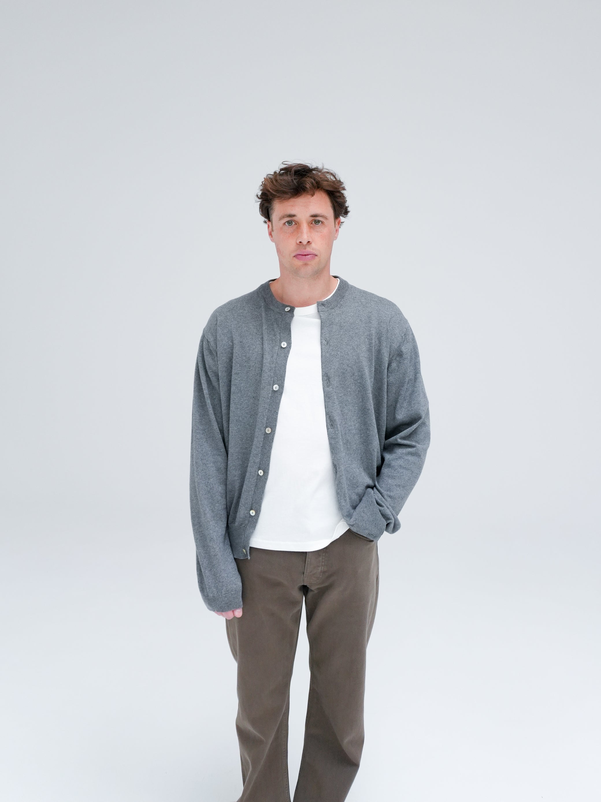 Knitted from an extra-fine cotton–cashmere blend for softness and breathability. Wear it open over a T-shirt or buttoned up as a shirt.