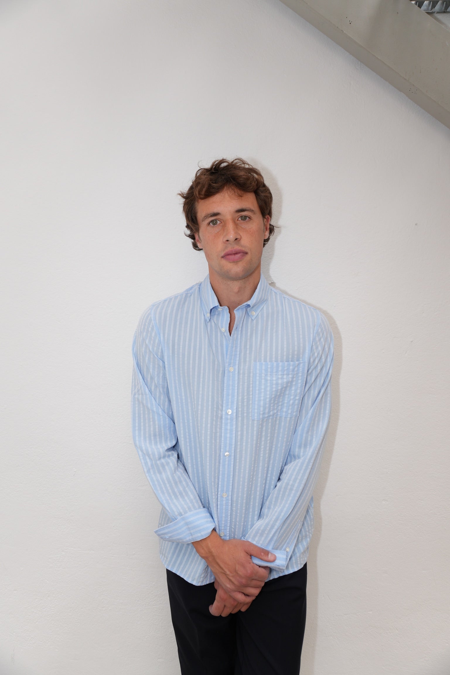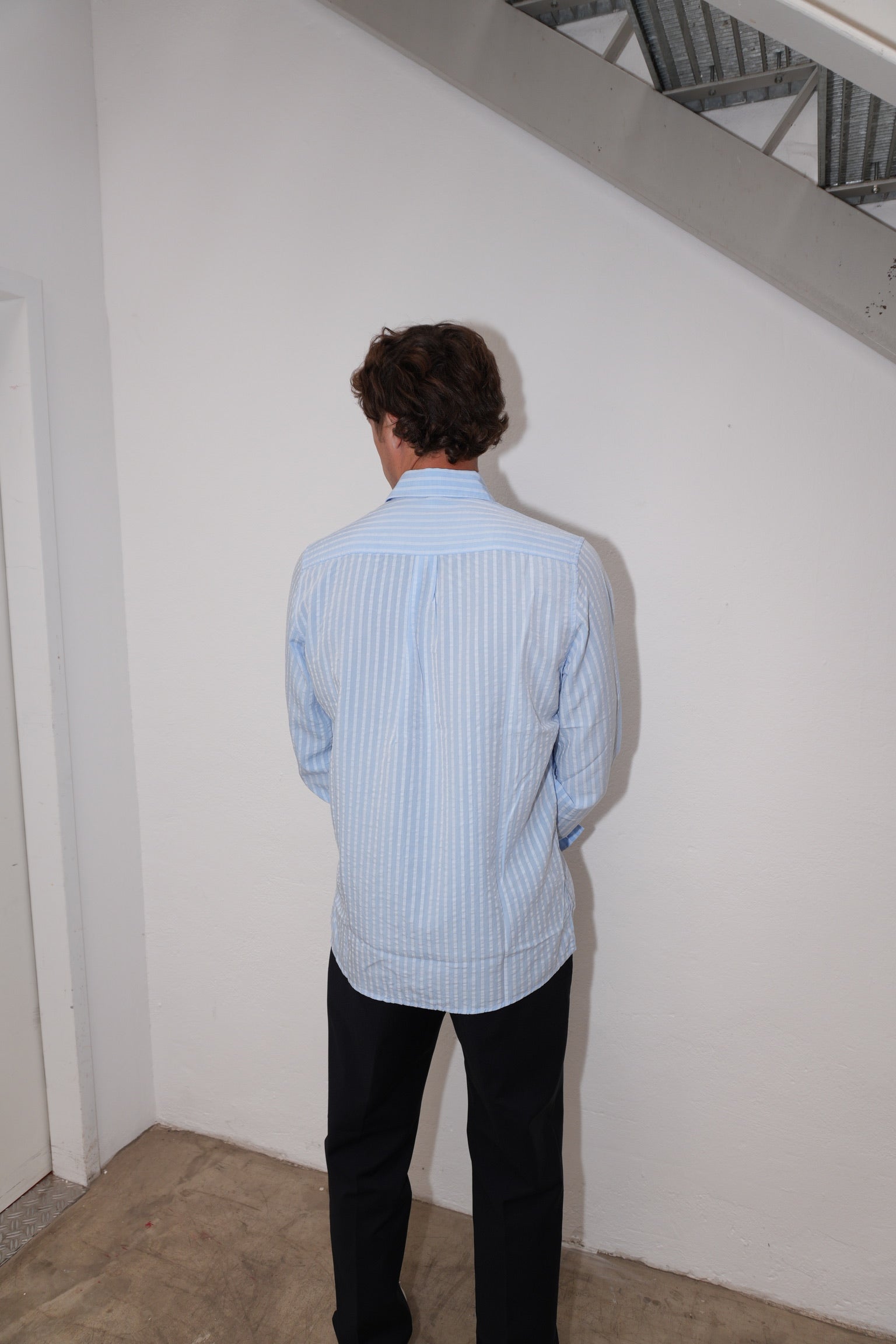 Another Aspects version of a classic button down shirt; stylish, yet understated, simple and full of touches that matter. Tailored from Tencel-seersucker fabric, for a comfortable and easy way of wear. Tuck it in, hang it loose, button it up or button it down. Staple for your everyday life, be it at the office, at a pool party or on the bike-ride in between the two. Single chest pocket and finished with mother-of-pearl buttons.