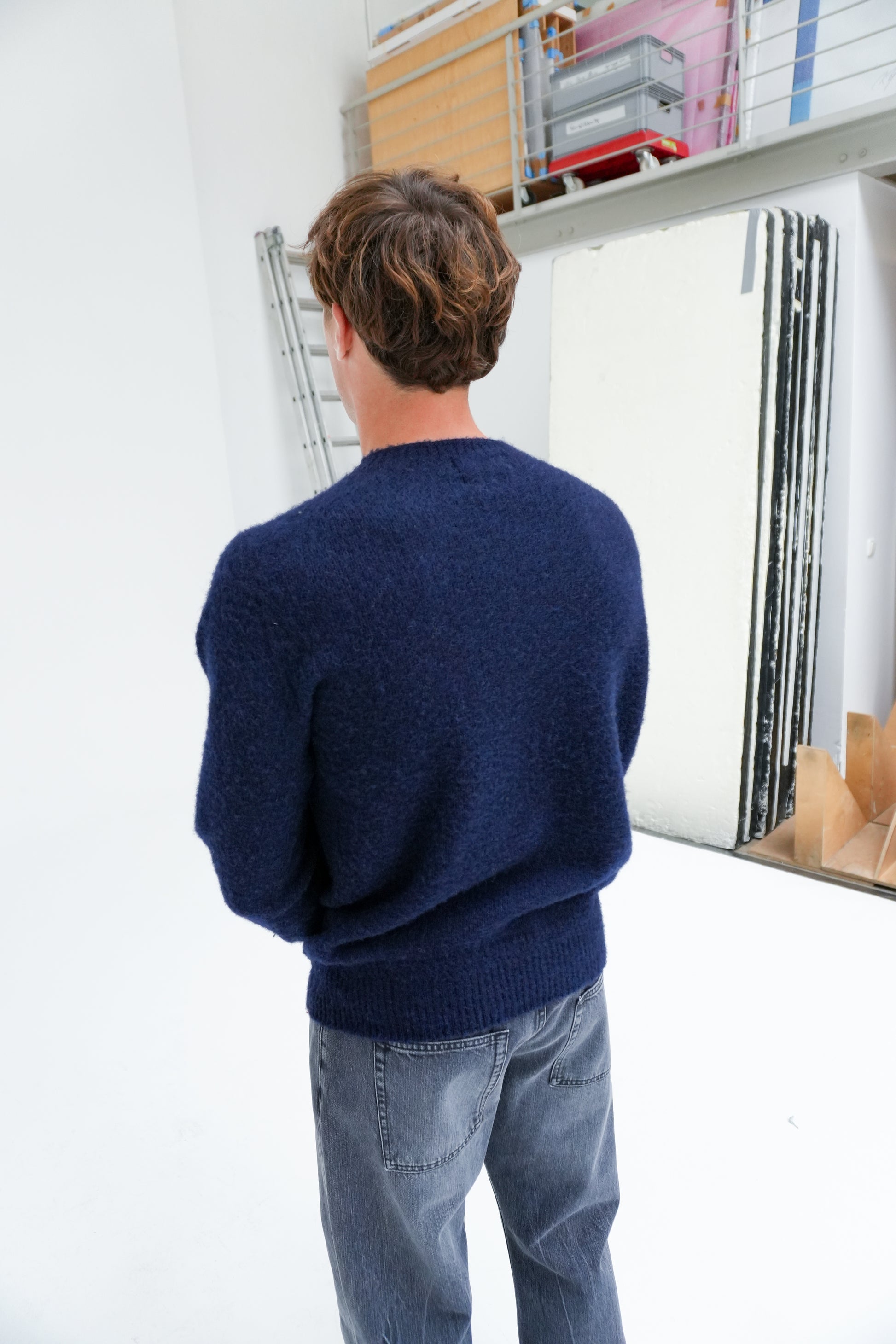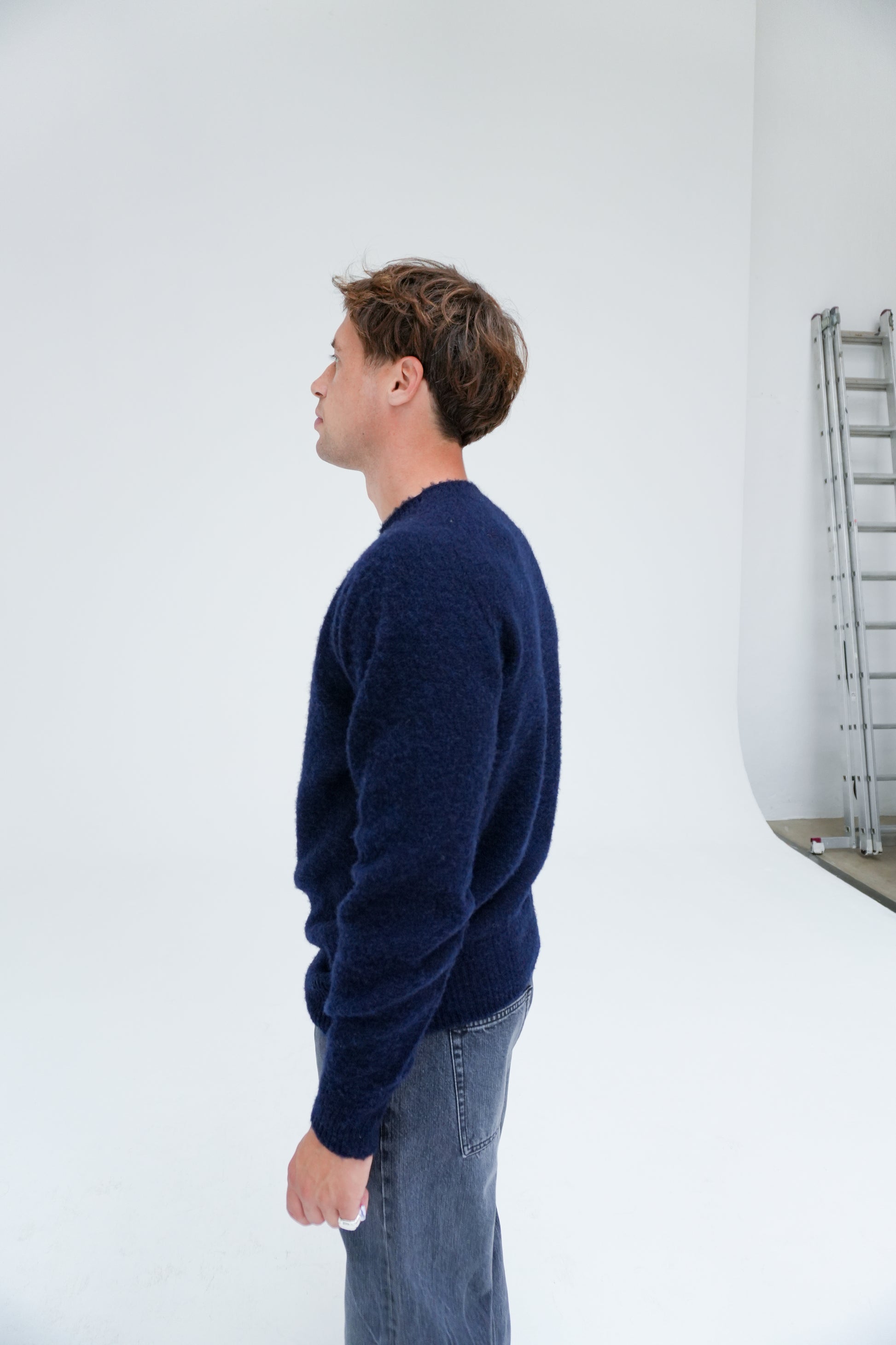 A true staple in any transitional wardrobe, the brushed wool sweater. Pared down to the essentials. Starting with the right cut. We collaborated with expert knitters in Scotland to make these crew-neck sweaters, which have been brushed for a soft and tactile finish. Seamless construction, with ribbed hem and cuffs. Breathable enough for a sudden burst of sun, but also with insulating properties for the colder months.