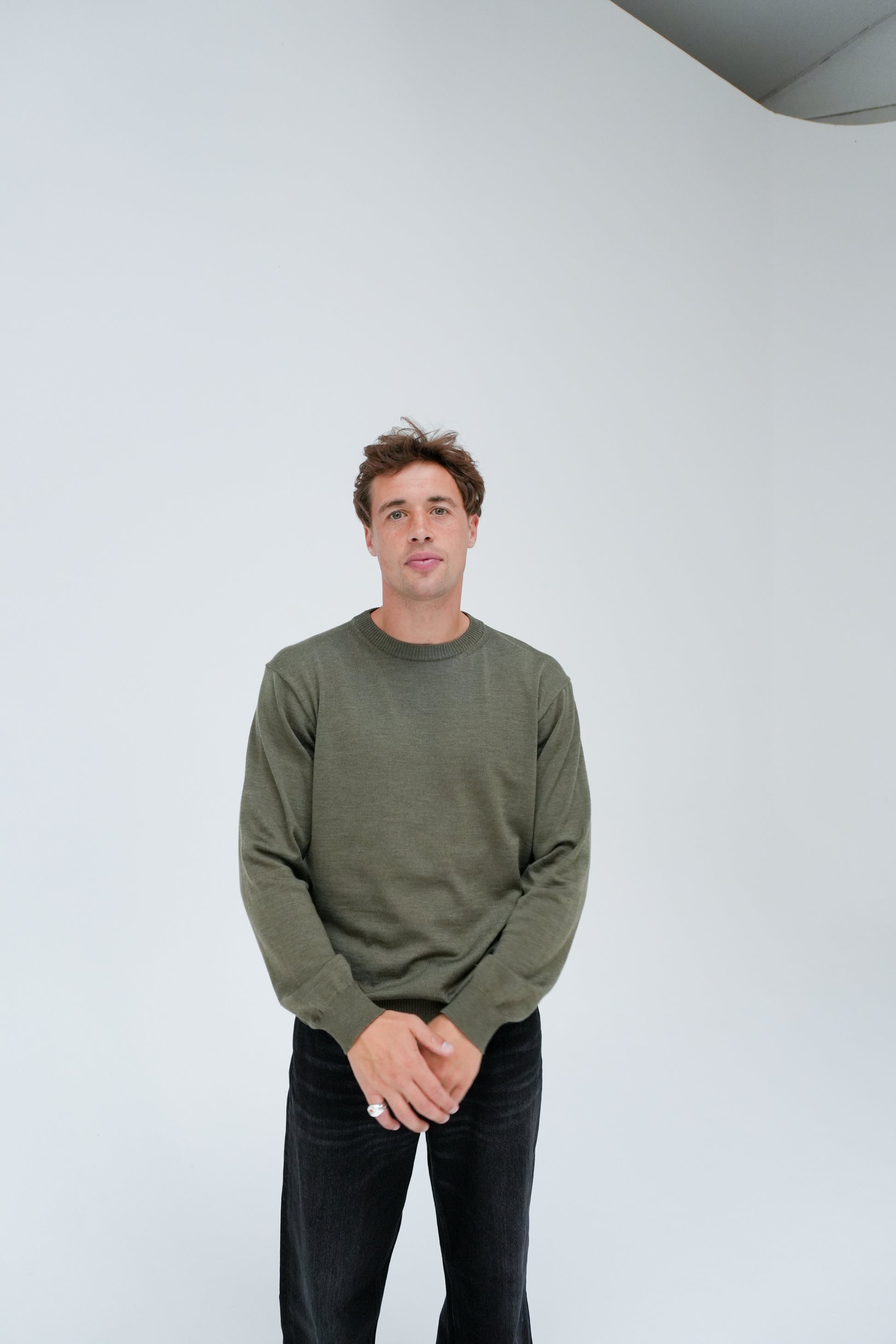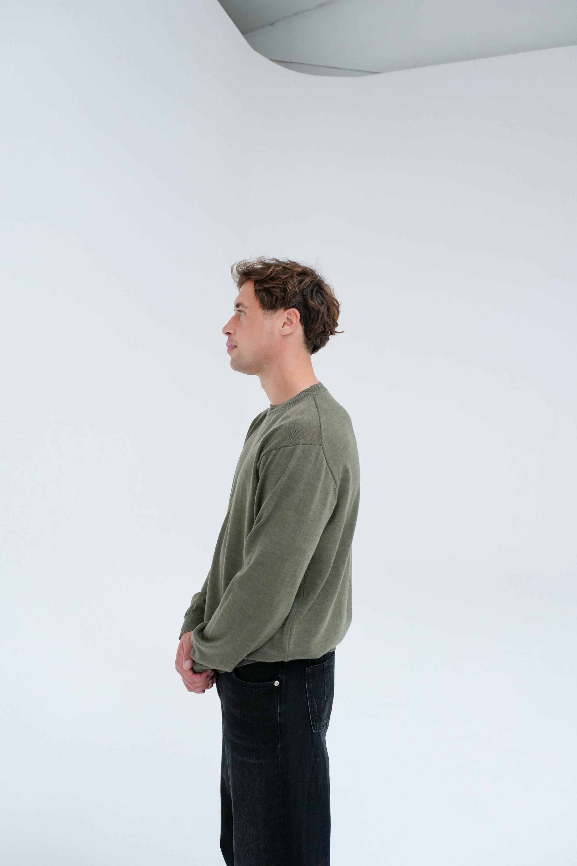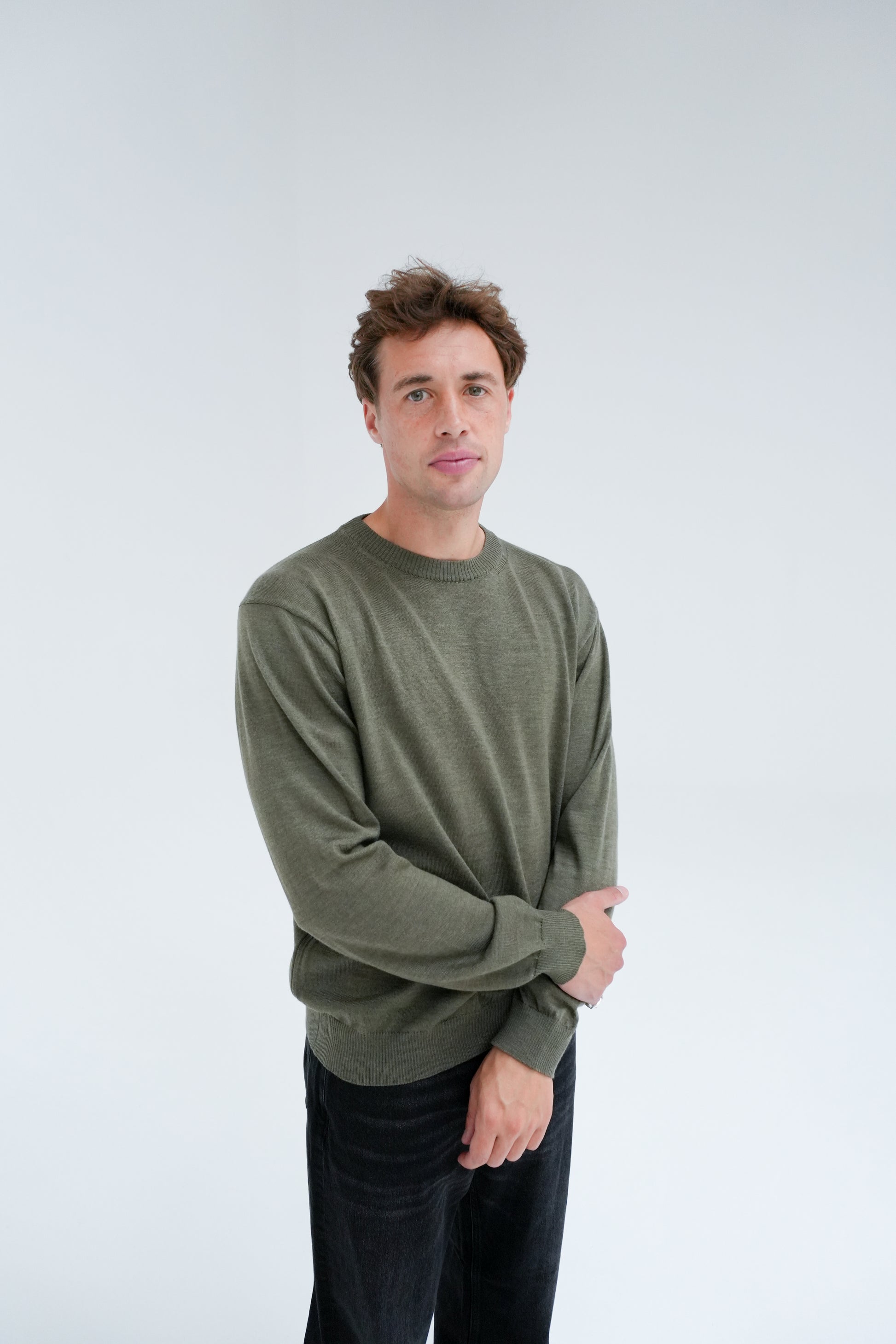 Our Sweater 5.0 is a loose-fitted classic crew-neck sweater, made in a fine gauge and with references from a sweatshirt. The crew-neck is knitted from the perfect extrafine merino wool of the highest quality, both suitable for the warmer days and colder evenings and at the same time soft and comfortable.