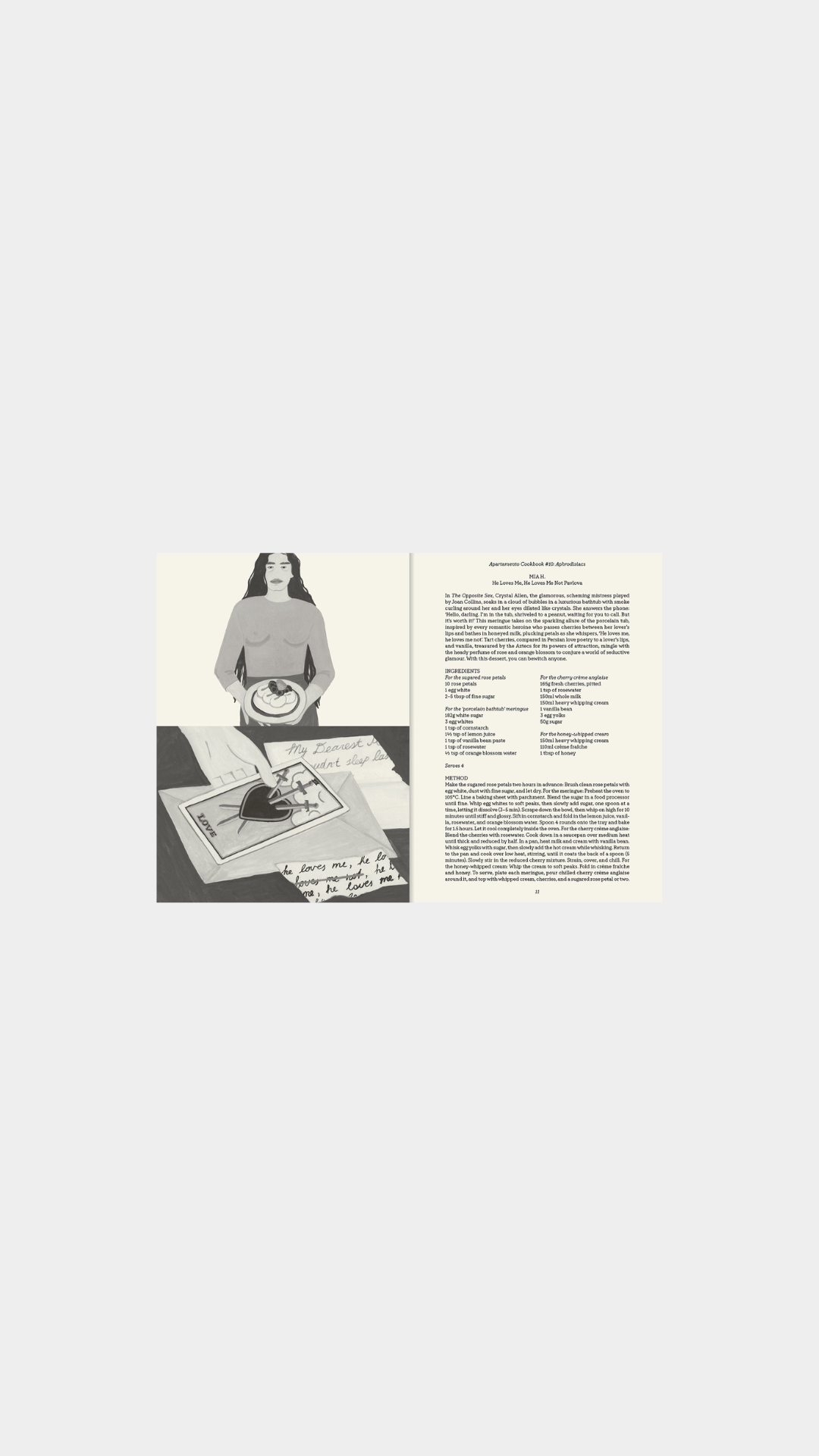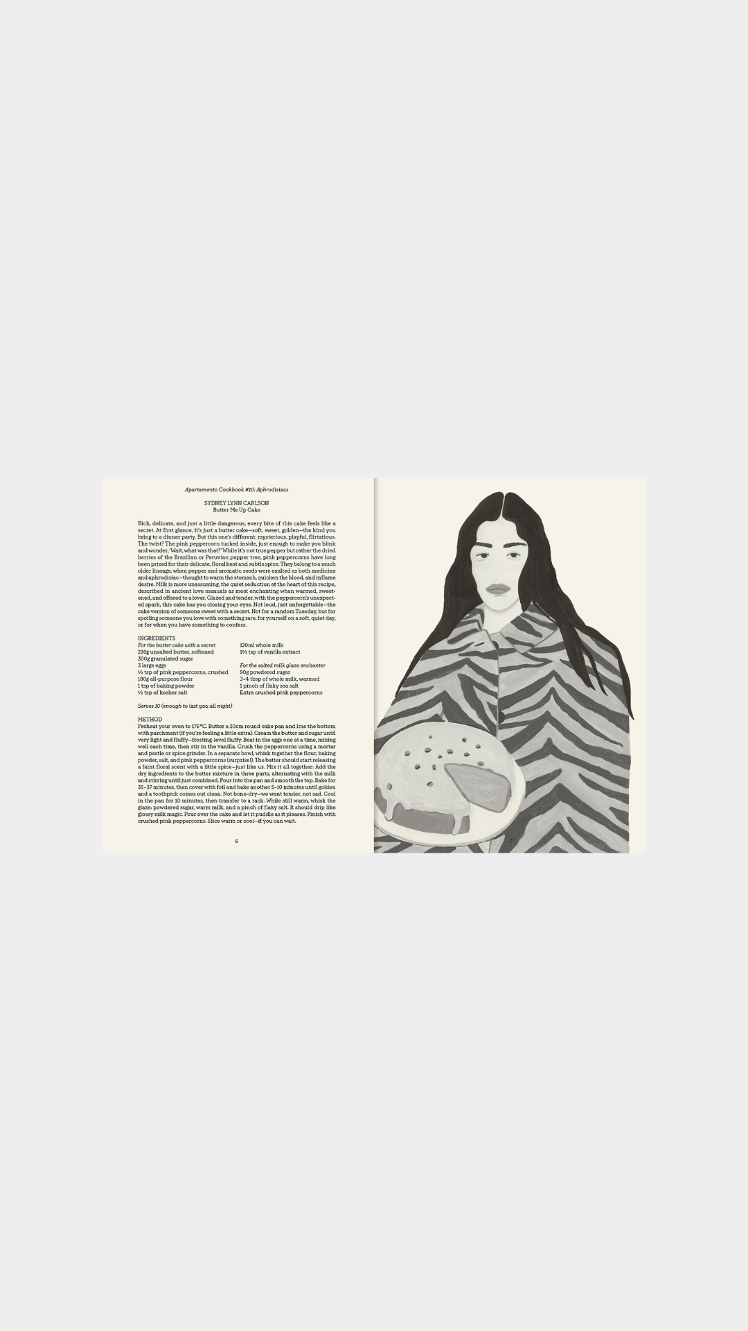 For the 10th anniversary of Apartamento Cookbooks, we’re delighted to bring you Cookbook #10: APHRODISIACS. Seductively illustrated by Sainte Maria, and filled with 16 recipes from lovers, ex-lovers, and food lovers from around the world, this volume unravels the obscure, the historical, the deeply personal, and the brand new world of aphrodisiacs.