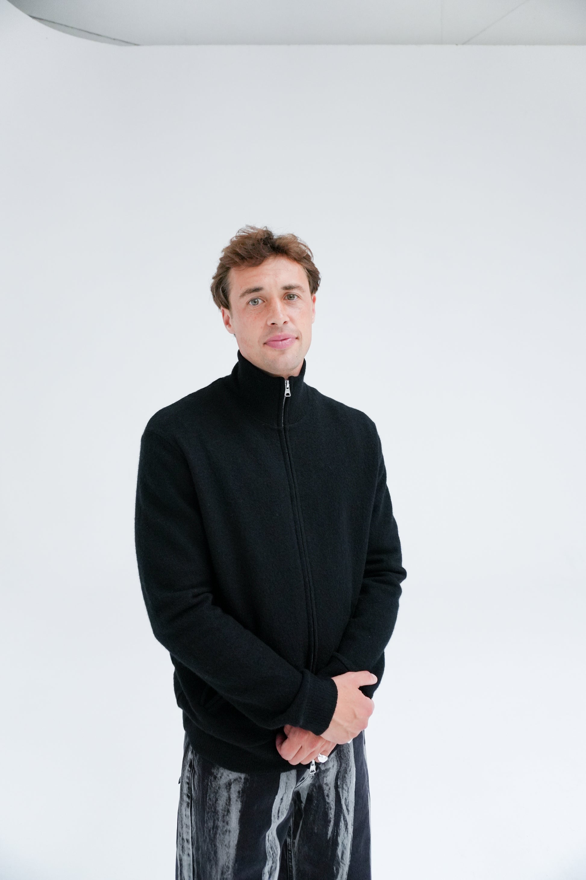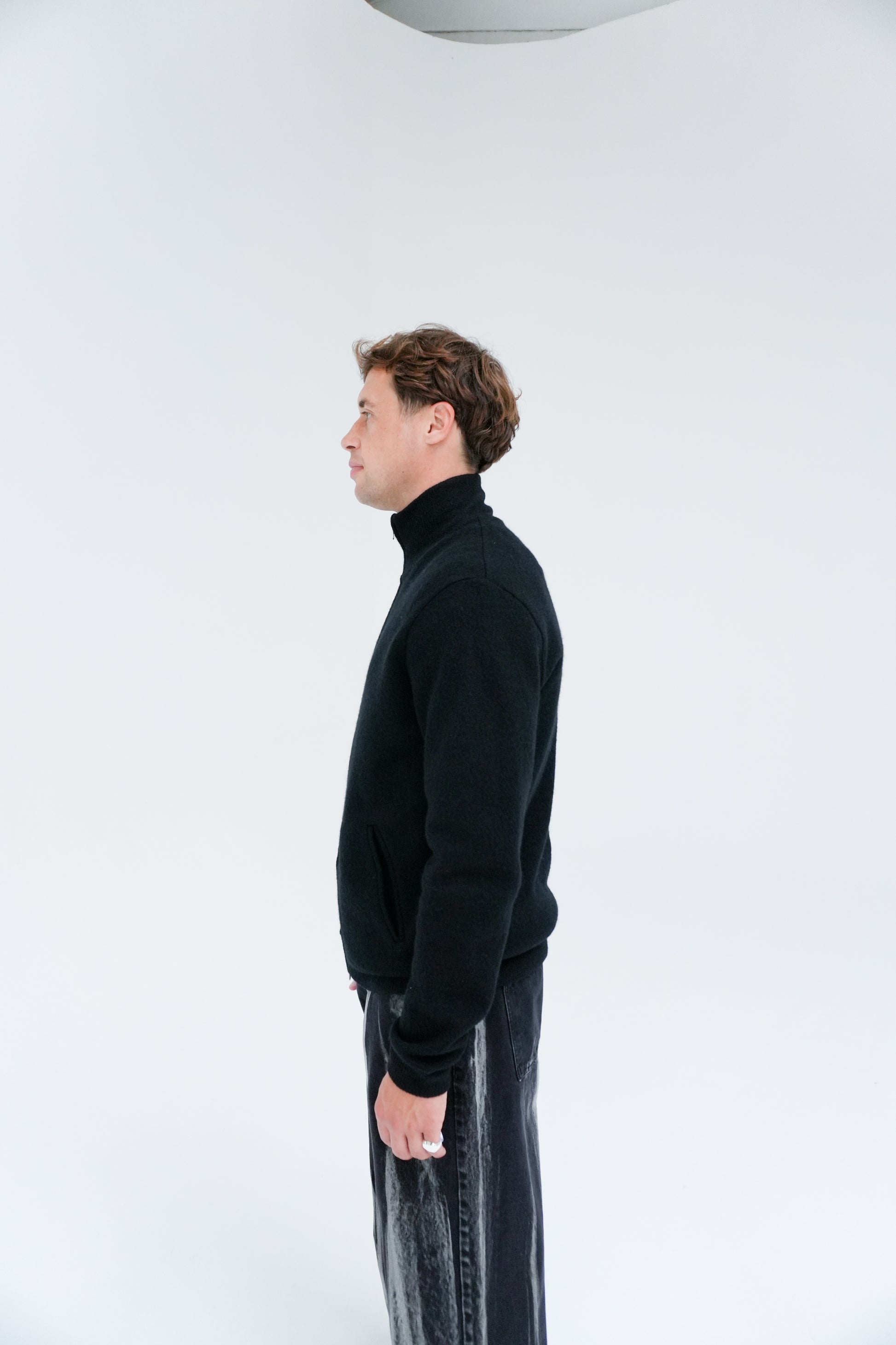 Classic zip-up hybrid crafted from soft-boiled merino wool. Designed with a high neck and finished with discreet side pockets.