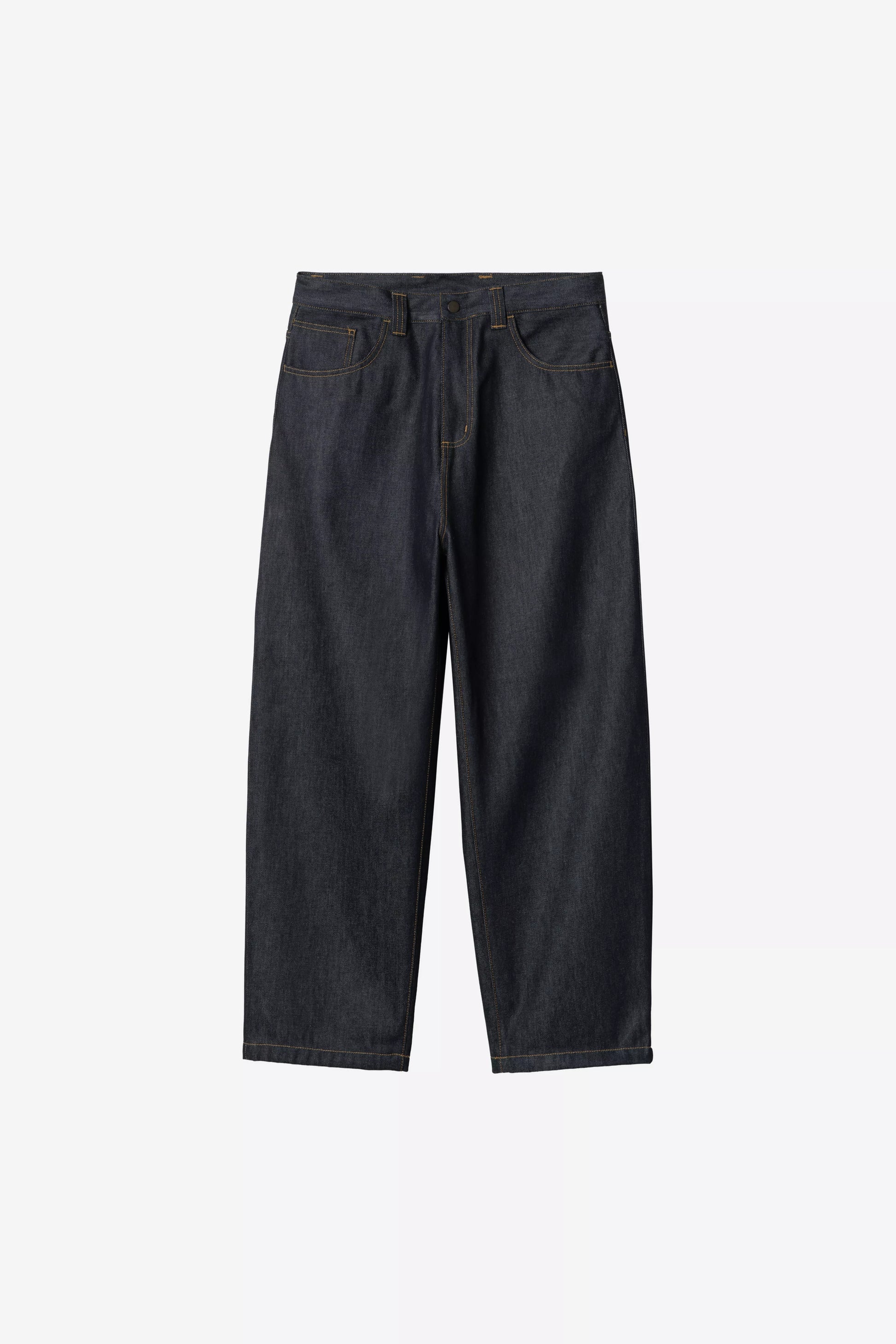 The loose cut Brandon Pant with a deep crotch is made of "Smith" denim, a heavy cotton fabric. A square woven fabric label completes the design.
