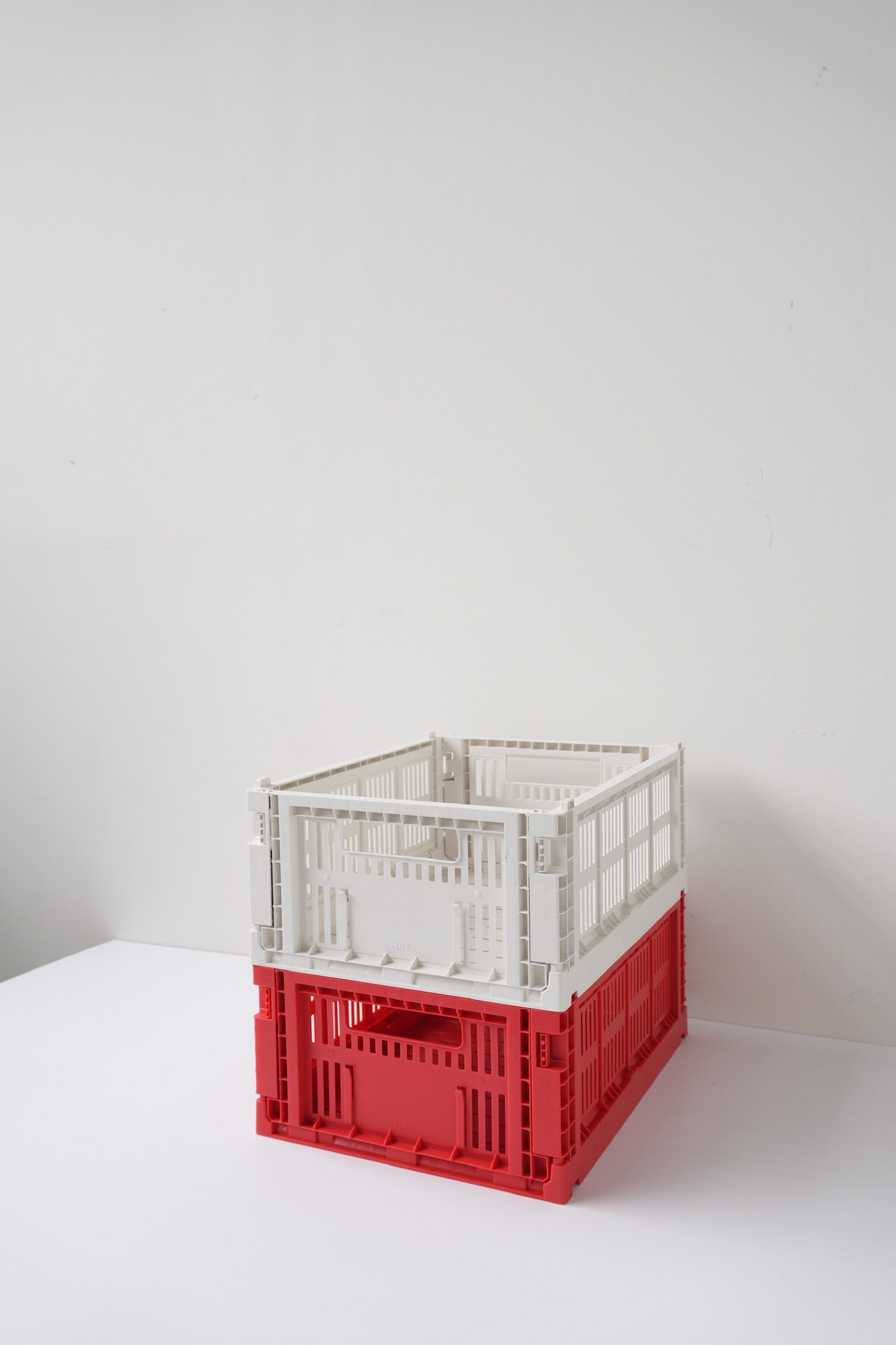 The Colour Crate Recycled Basket by Hay is part of a versatile series of storage boxes in various colors and sizes. With a ventilated, stackable design, these food-safe crates have two handles for easy storage and transportation. Made from recycled polypropylene, they are ideal for organizing items in the bathroom, kitchen, office, or any room in the house.