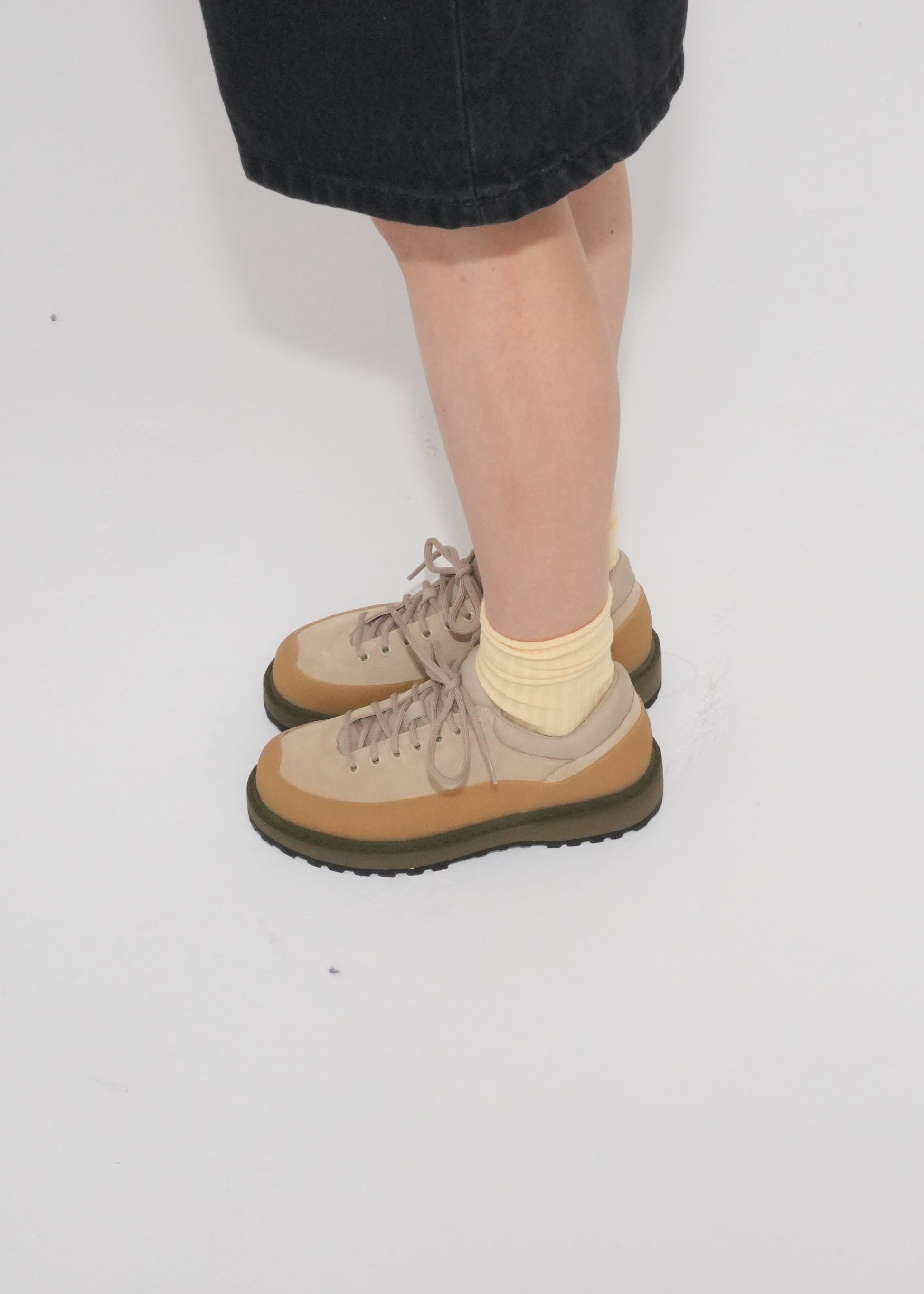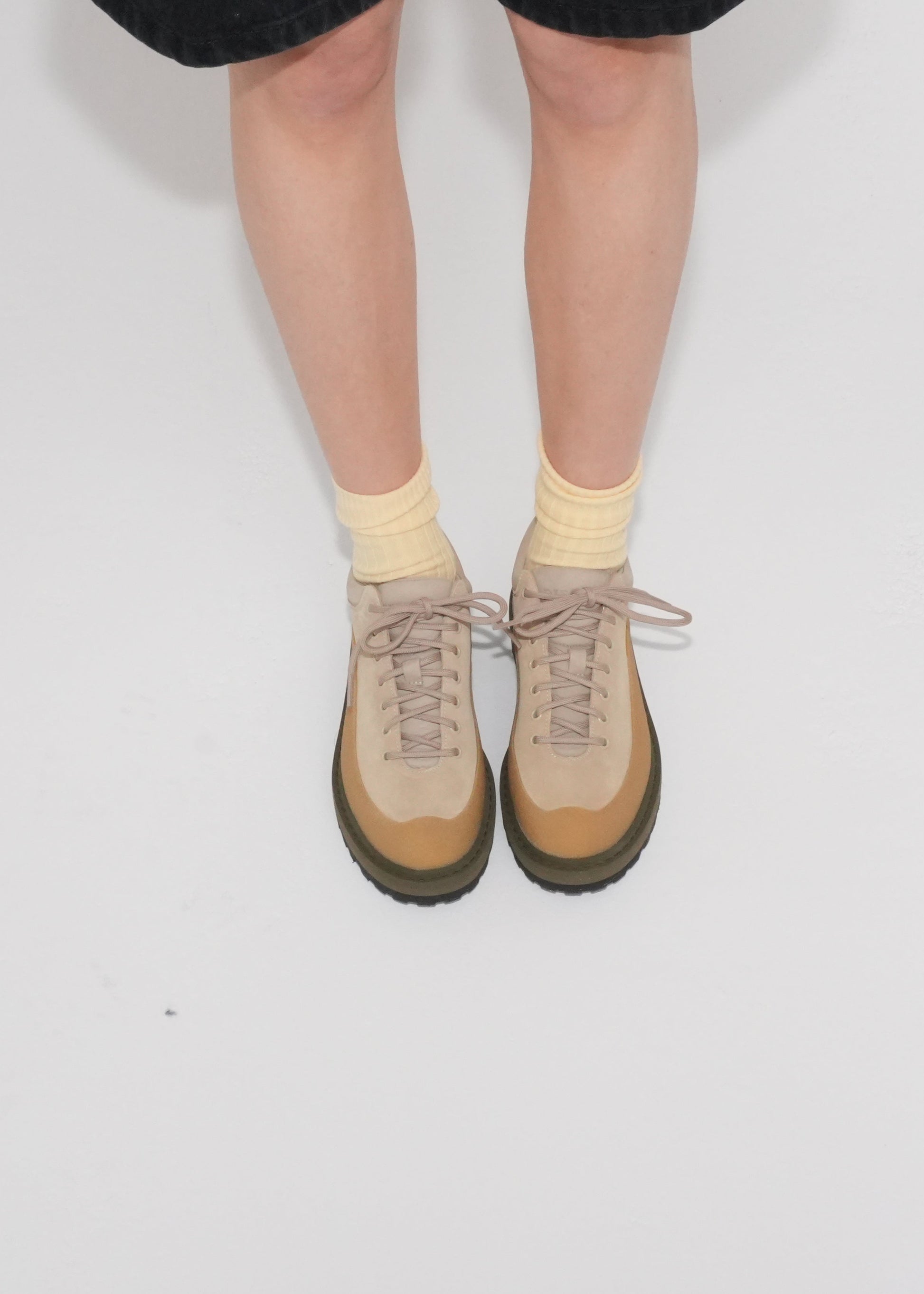 The Cornaro Eyelets, the latest addition to the Cornaro family, debuts in Olive and Light Taupe Suede for Spring/Summer 2025. Featuring a wide, crepe rubber rand and tonal stitching, it delivers a contemporary twist with heritage-inspired charm. This versatile low-top design is perfect for city wear or light hikes. Crafted from weather-resistant, wax-treated suede and finished with a lightweight lugged rubber sole, the Cornaro Eyelets are ideal for transitional seasons.