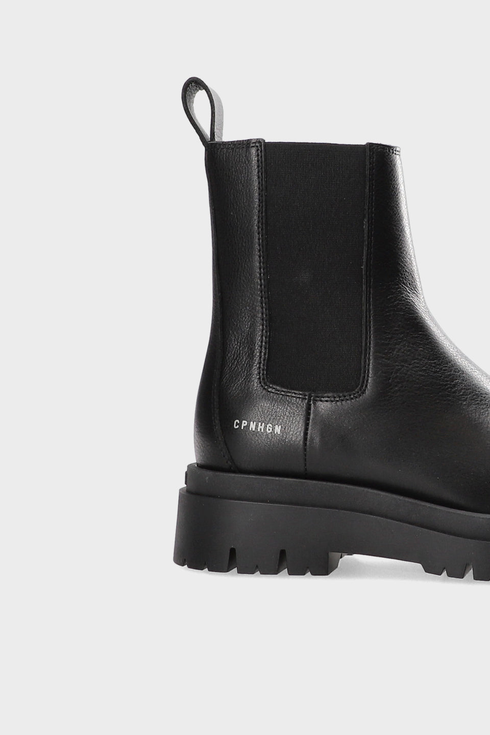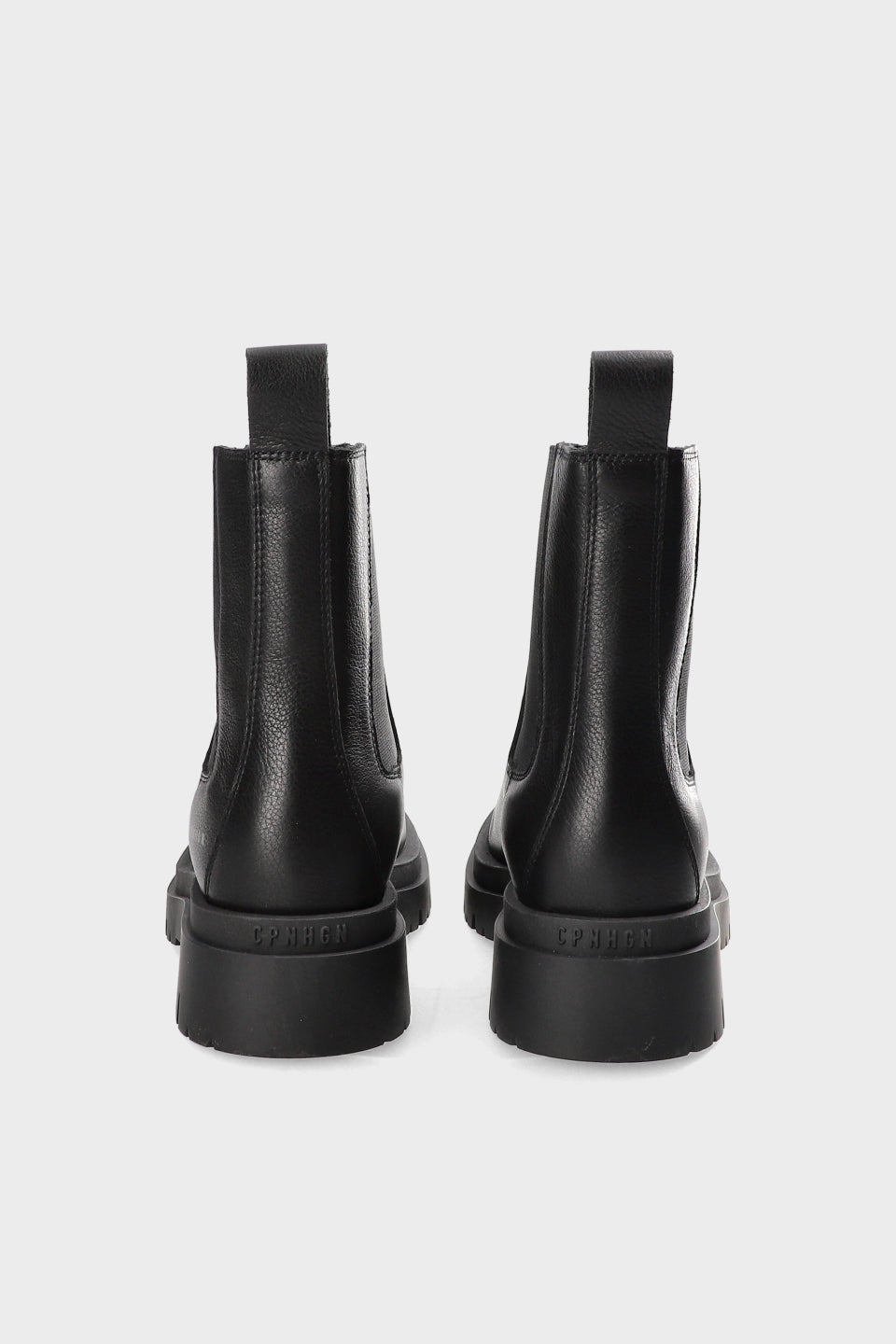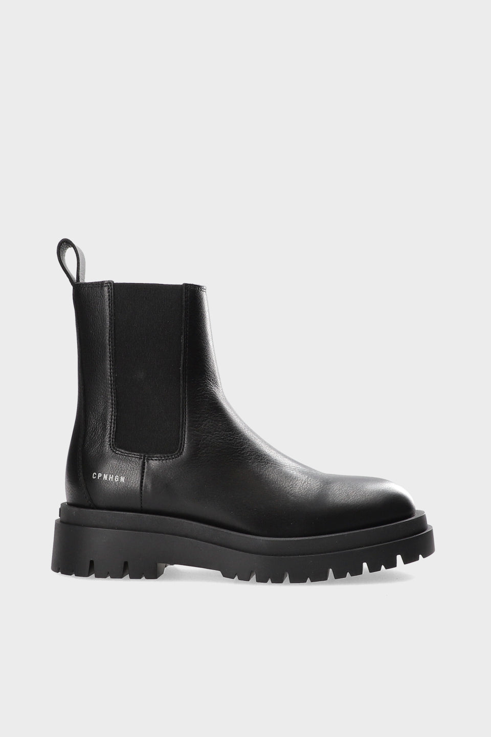 Ankle-high Chelsea boots in soft smooth leather. Clear silhouette. Elastic seeds with embroidered details. Pull loops on the shaft. Gold-coloured logo on the outside. Round cap. Sporty sole with rough profile. Robust Chelsea boots with minimalist details.