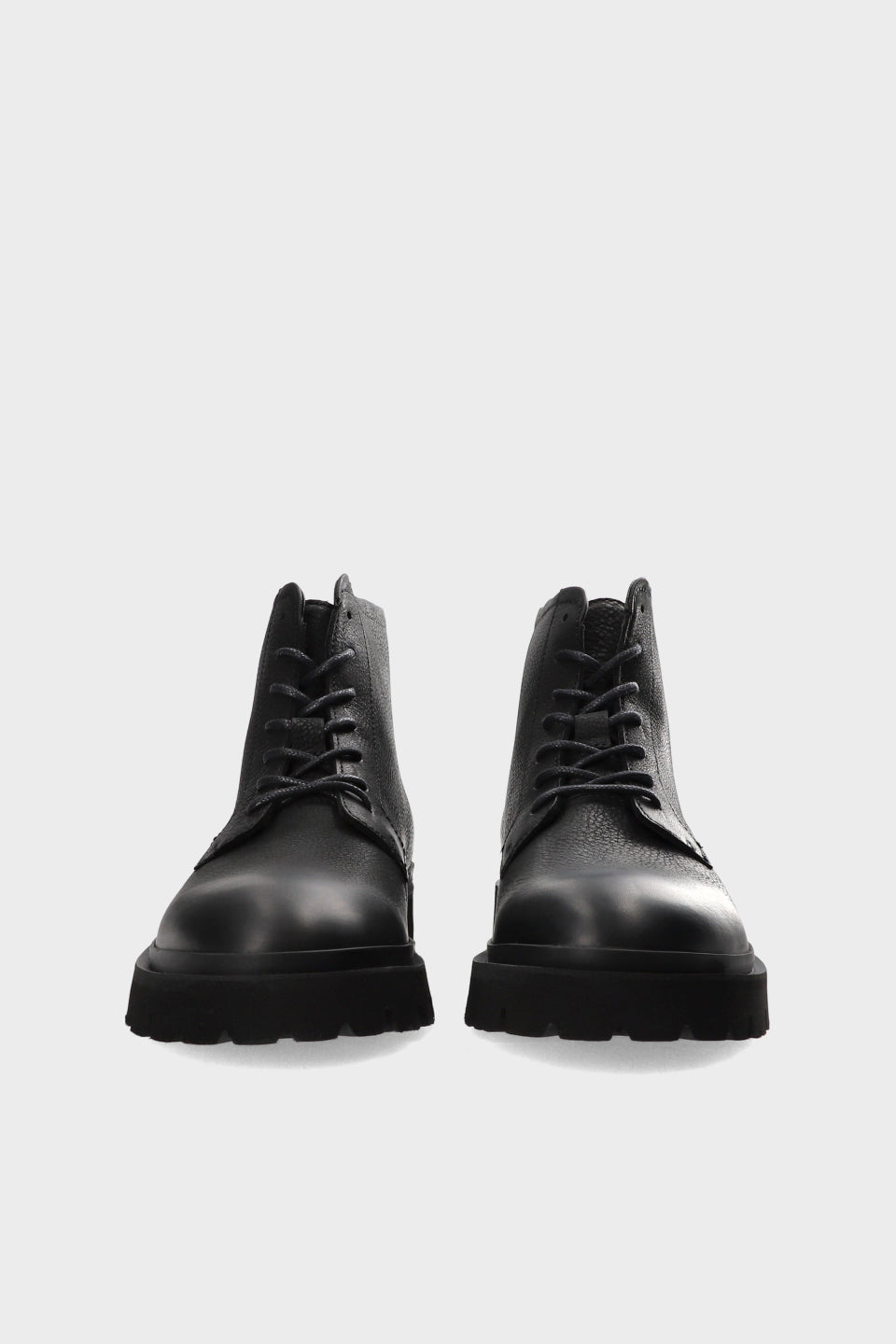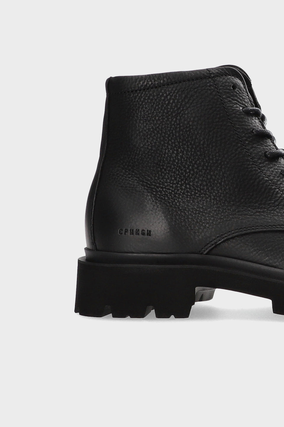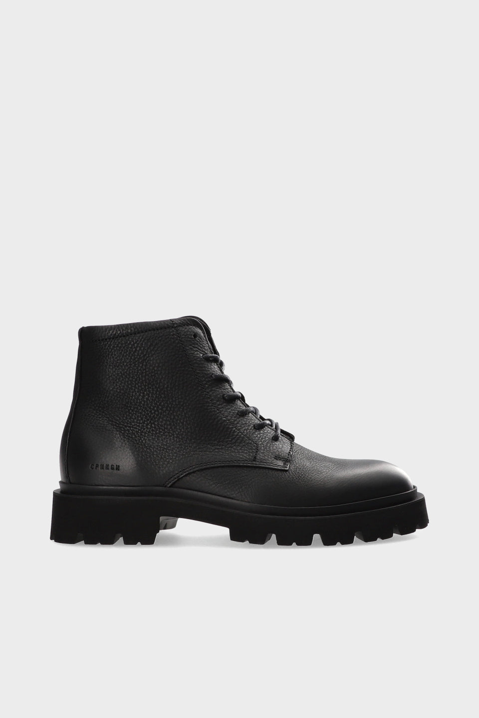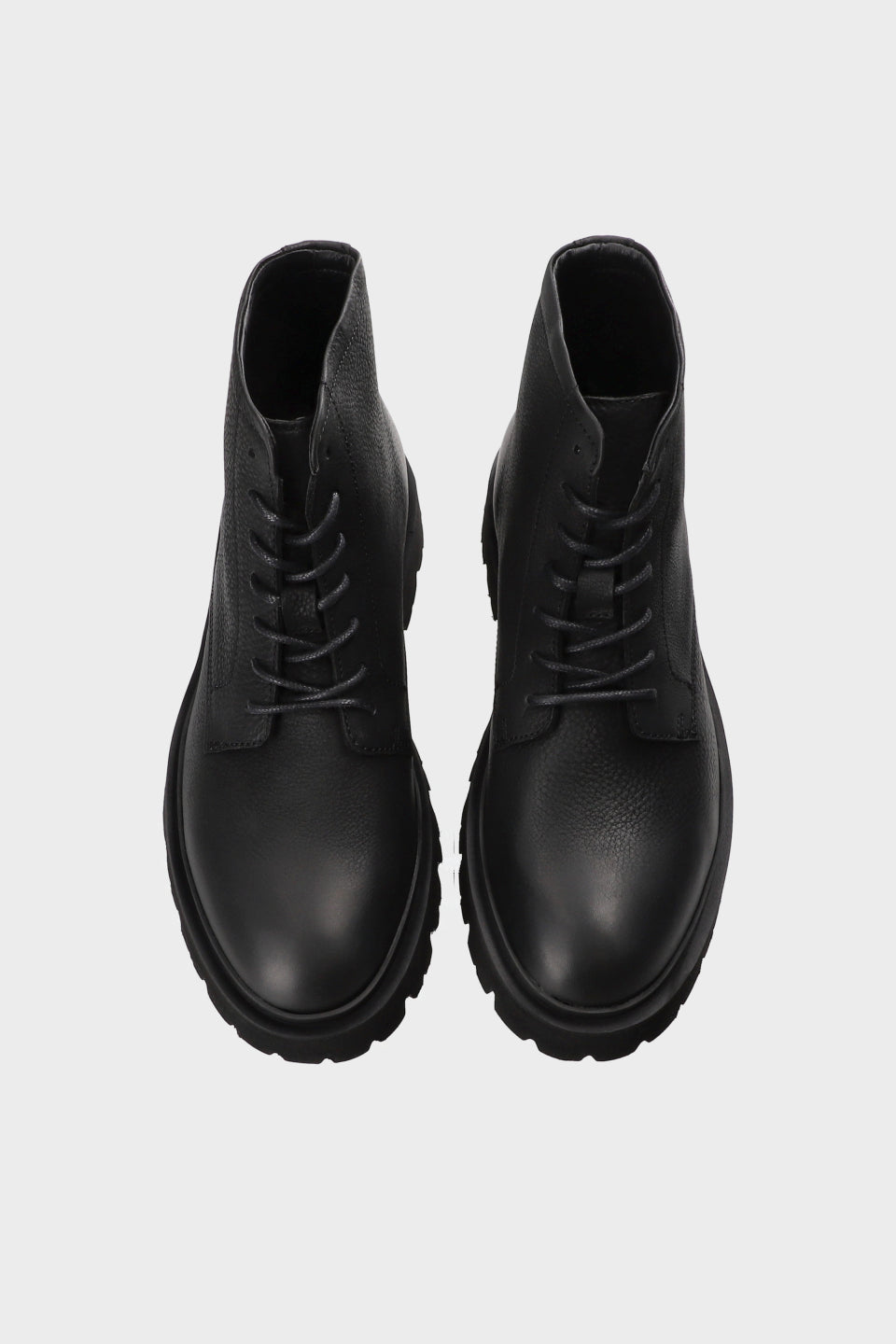 Ankle-high lace-up boots in soft, grained leather. Silhouette inspired by combat shoes. Minimalist elements with embroidered details. Lacing at the front. Slightly tapered toe. Sporty sole with coarse profile.Robust lace-ups with minimalist details.