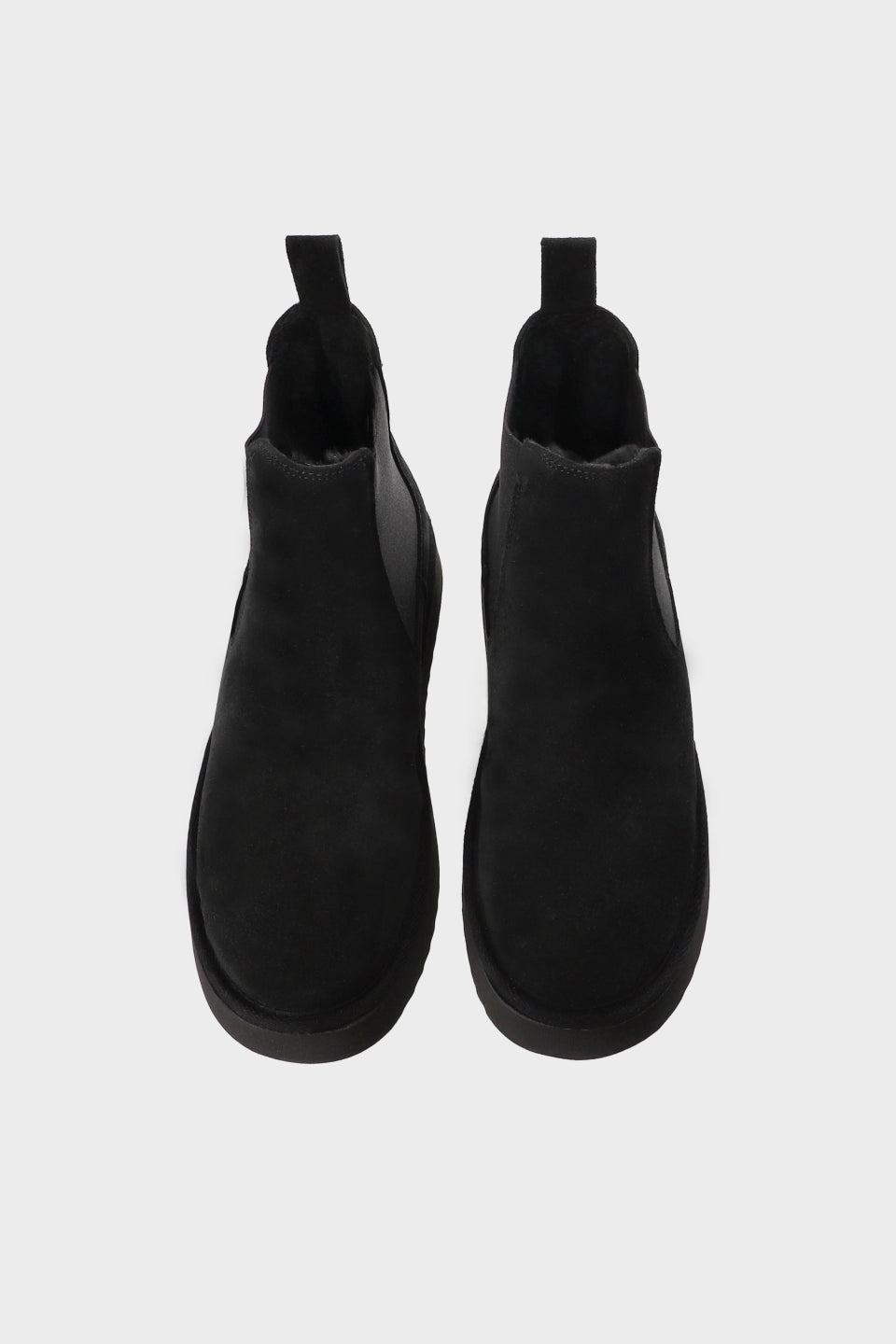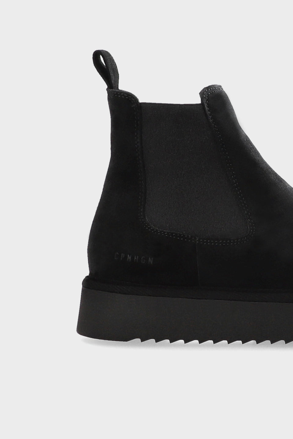 Ankle-high Chelsea boots in soft suede. Clear silhouette. Warm lambskin lining. Elastic inserts with embroidered details. Logo on the outside. Rear pull loop. Round cap. Flat sole with light tread. Warm Chelsea boots in a minimalist design.