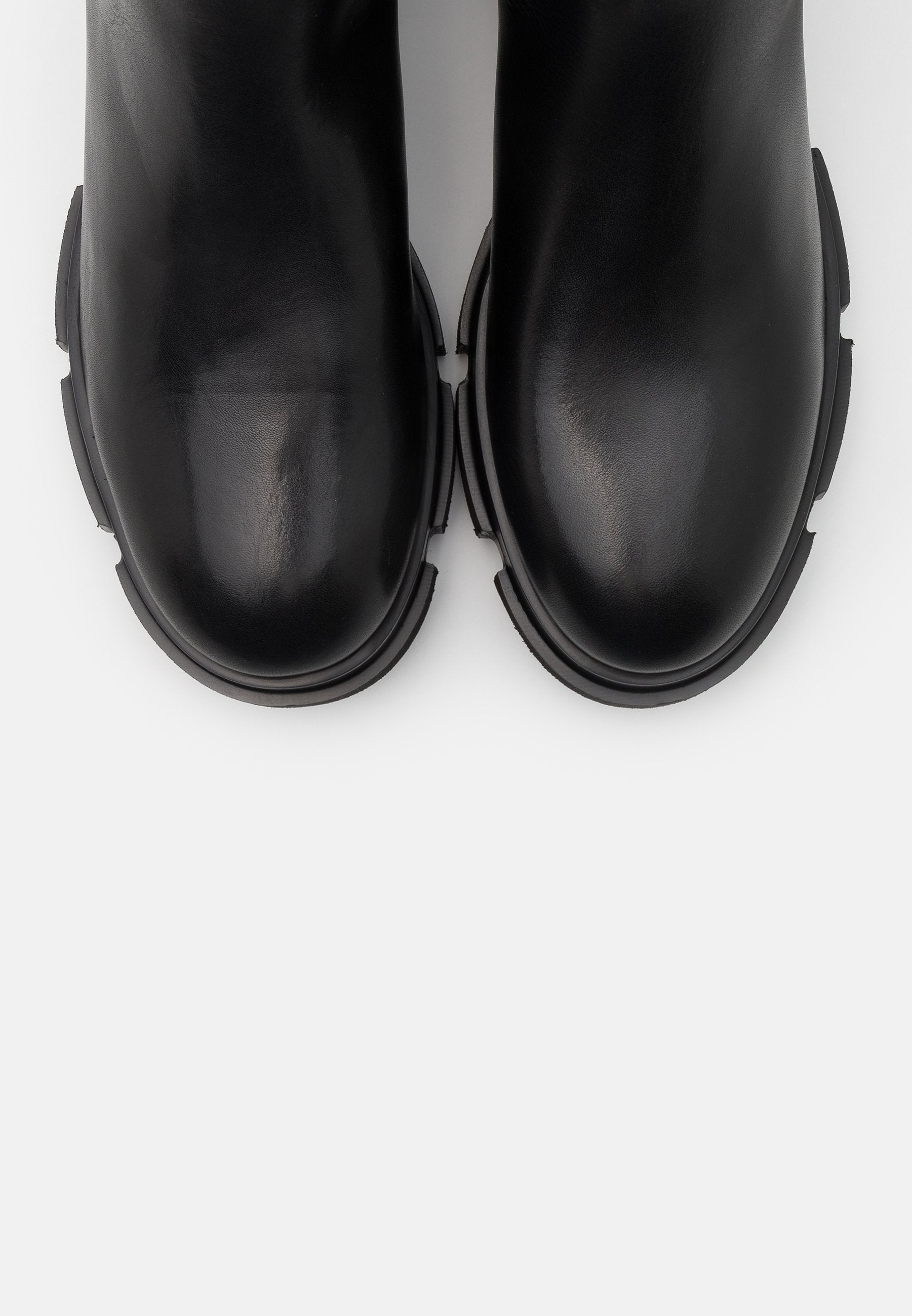 Mid-height Chelsea boots made from smooth leather with a chunky profile. Elongated Chelsea silhouette. Elastic inserts. Round cap. Two pull loops on the shaft. Subtle branding on the outside. A relaxed yet expressive style that attracts attention.
