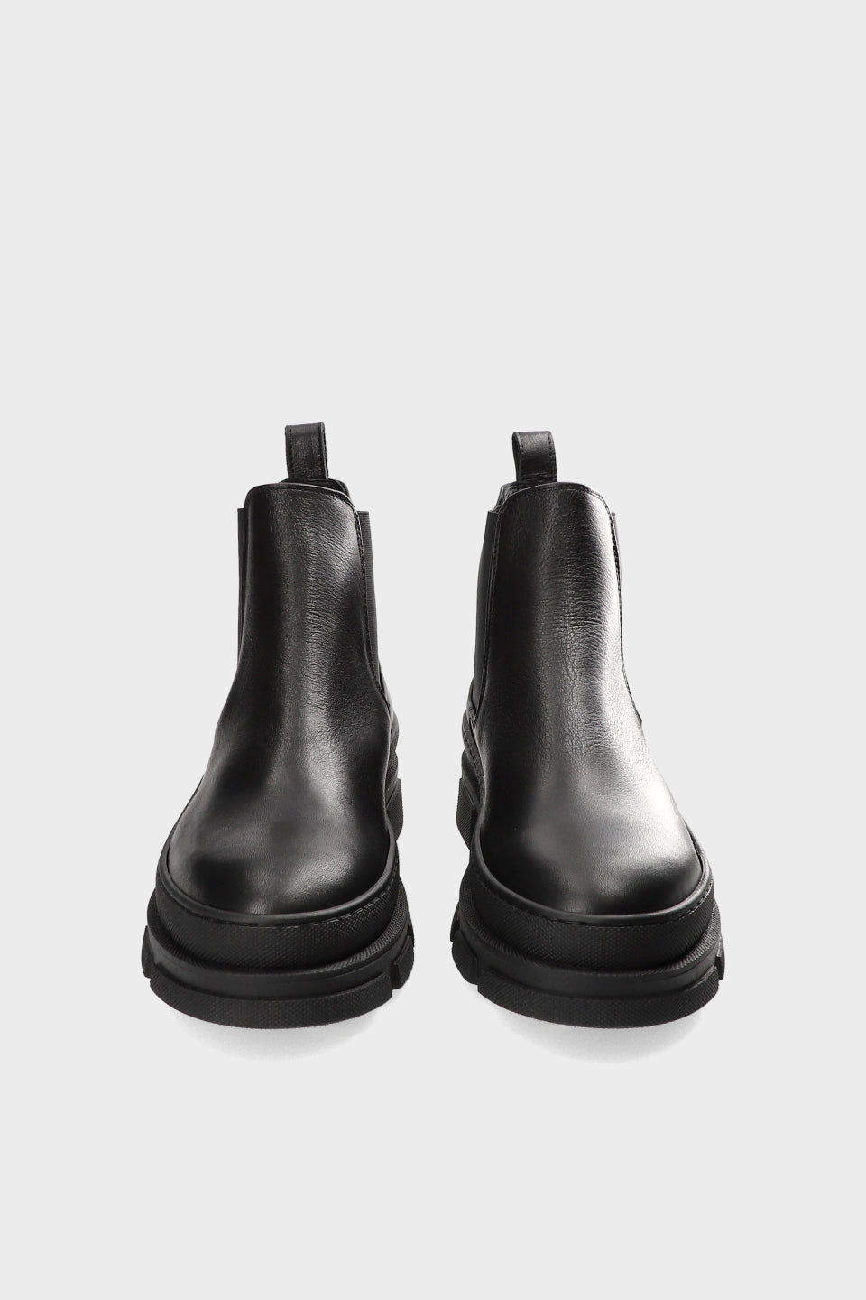 Ankle-high Chelsea boots made from soft smooth leather. Chunky silhouette. Elastic inserts with embroidered details. Pull loop at the back. Logo on the outside. Slightly tapered toe section. Chunky sole with an eye-catching profile. Sporty Chelsea boots for relaxed everyday looks.