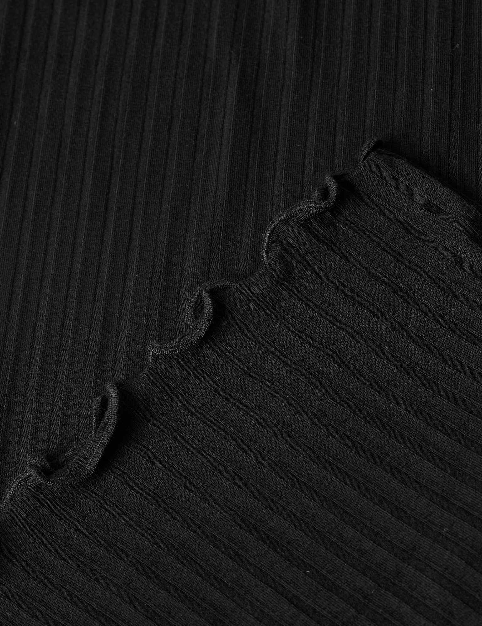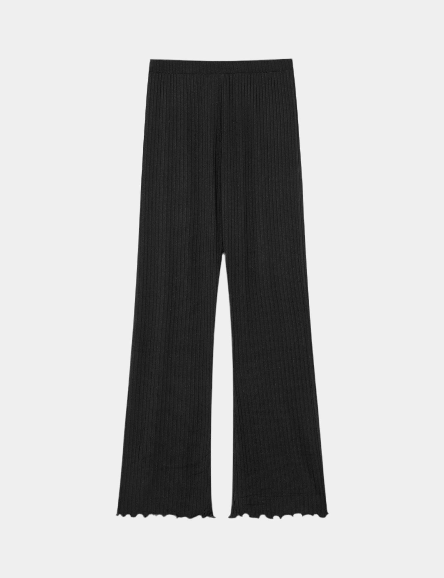 Ribknitted in a super soft and flexible jersey. The waistband is elastic and the edges are curied.