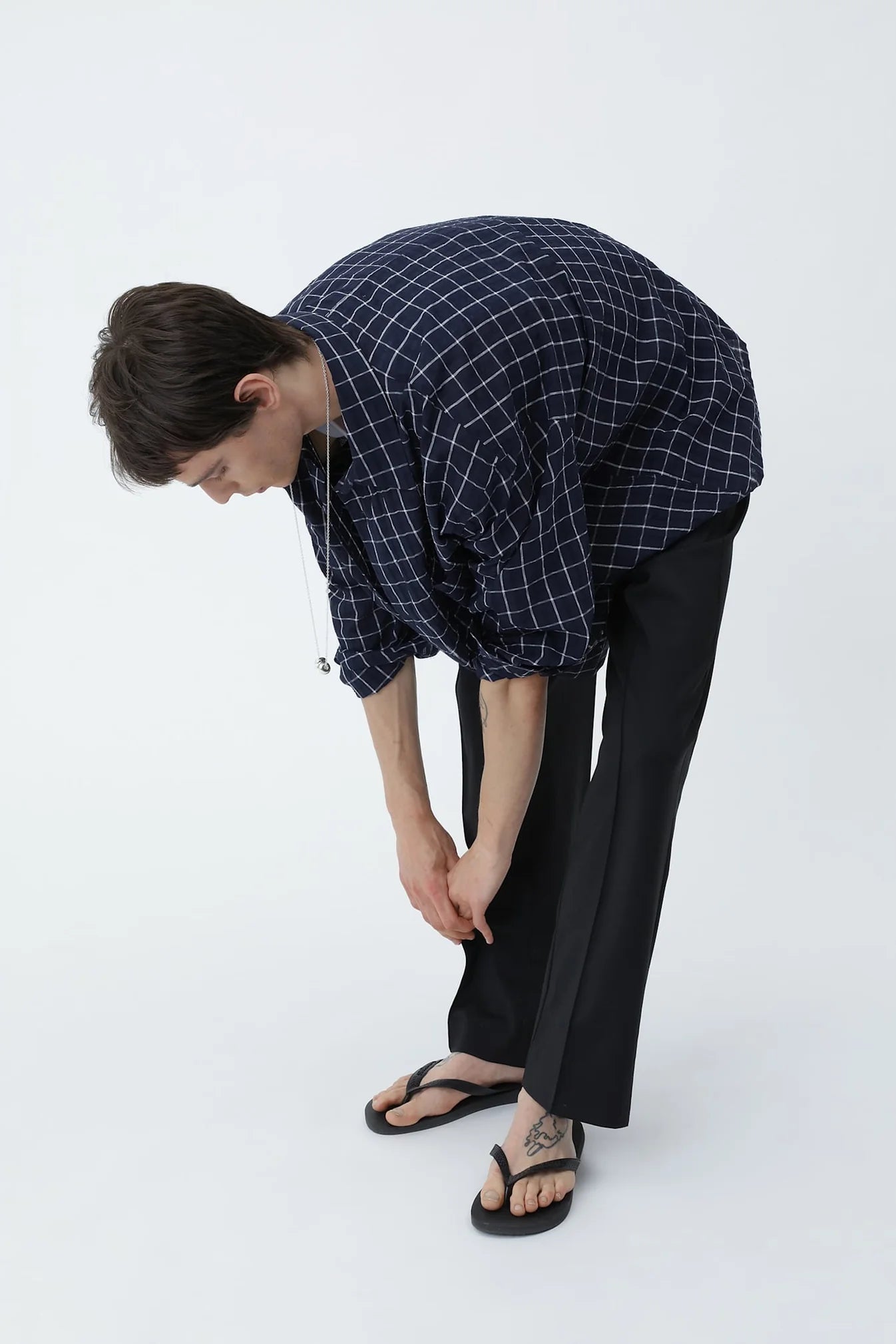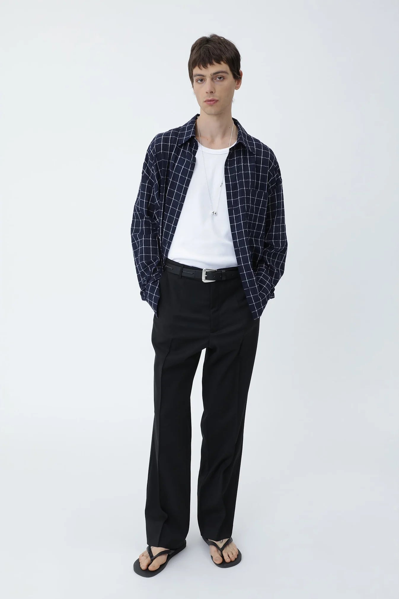 The Maza Check Shirt is crafted from a cotton blend with a light and drapy hand-feel, creating a relaxed and comfortable silhouette. The style is detailed with a blue tone check pattern, adding a subtle and refined visual texture.