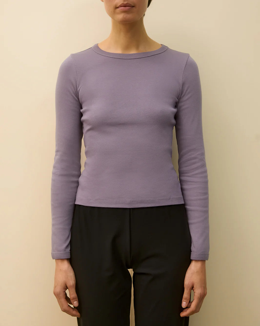 A classic long sleeve tee with a banded neck and cuffs, made from medium-weight organic cotton rib.