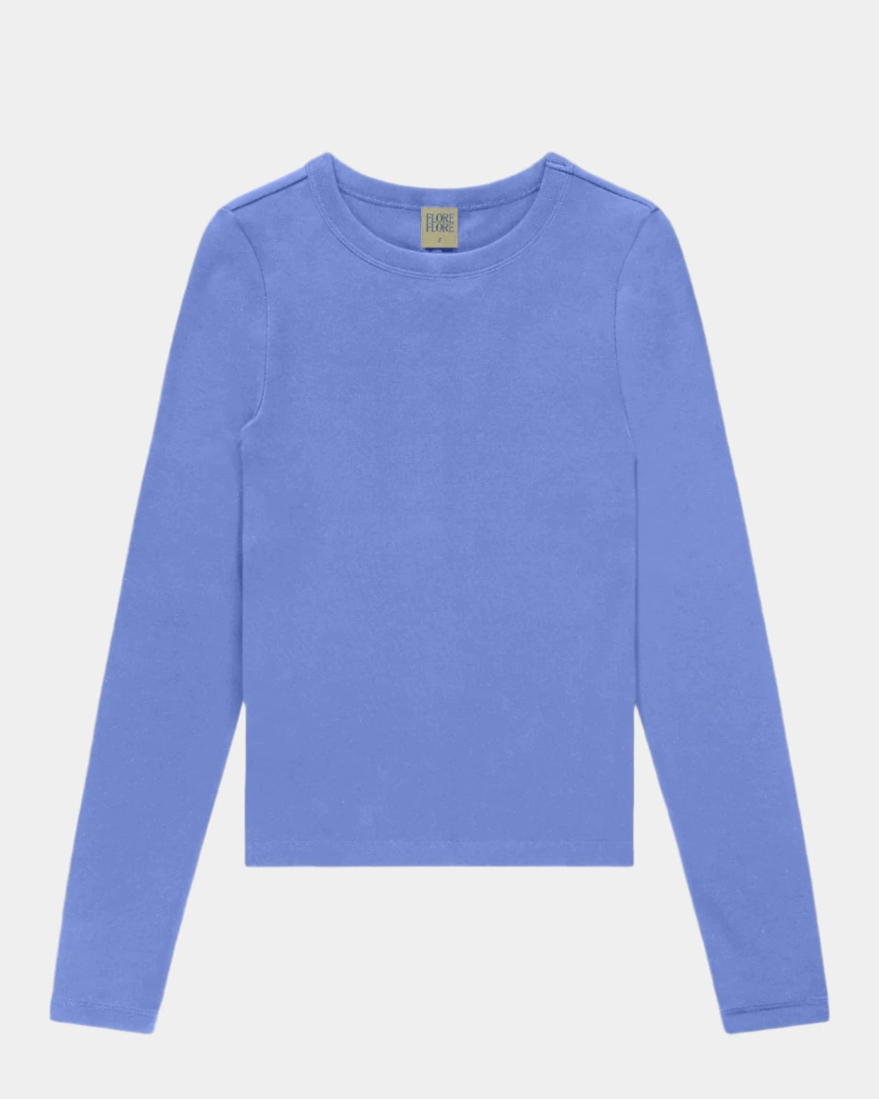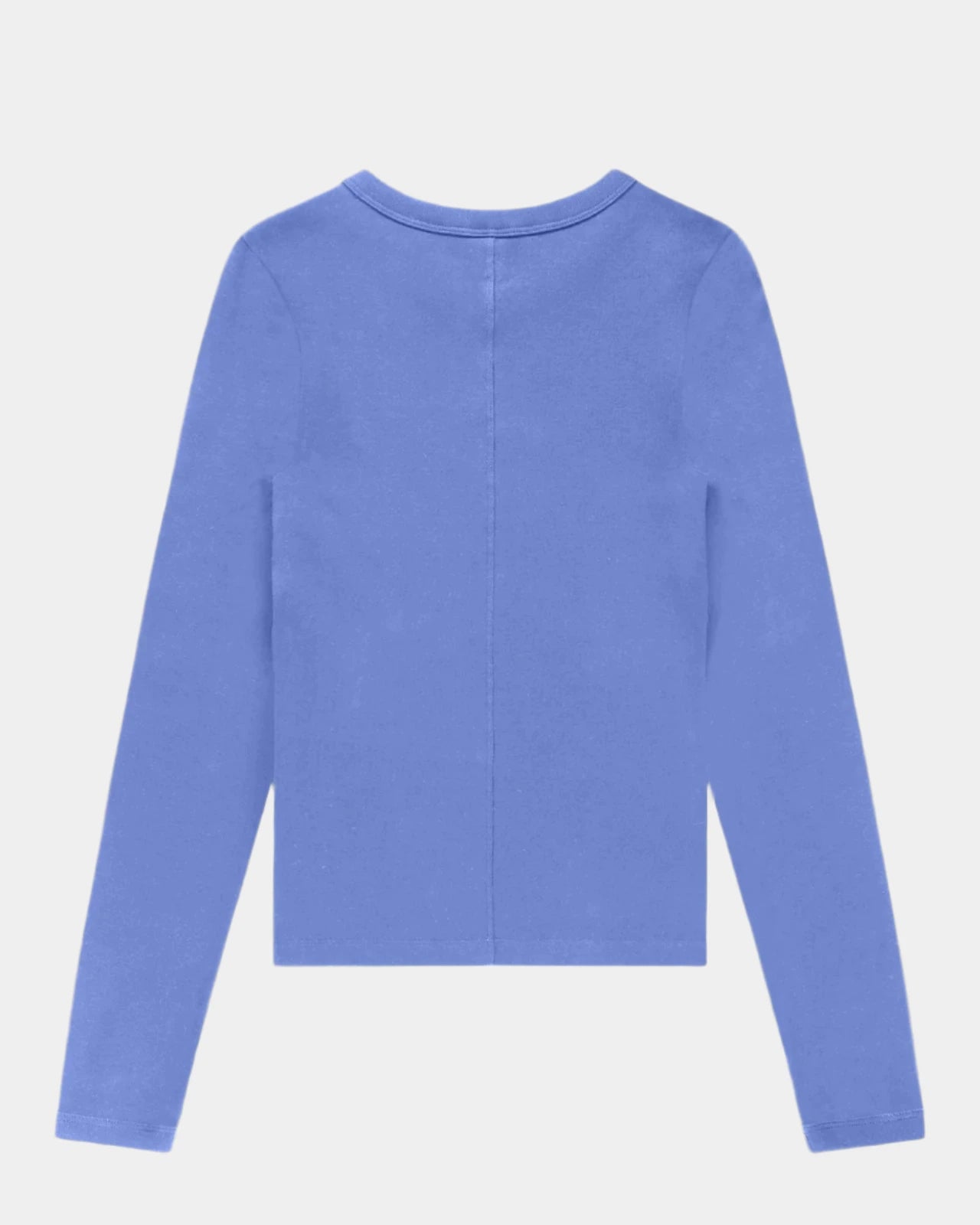 A fitted classic long-sleeve tee with a banded neck and cuffs. Perfect for a summer night or winter layering. Made in a medium weight organic cotton baby rib.