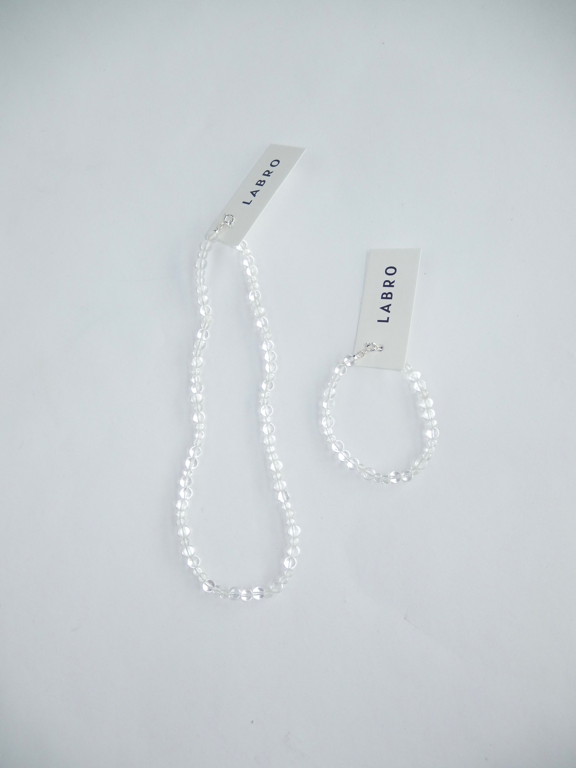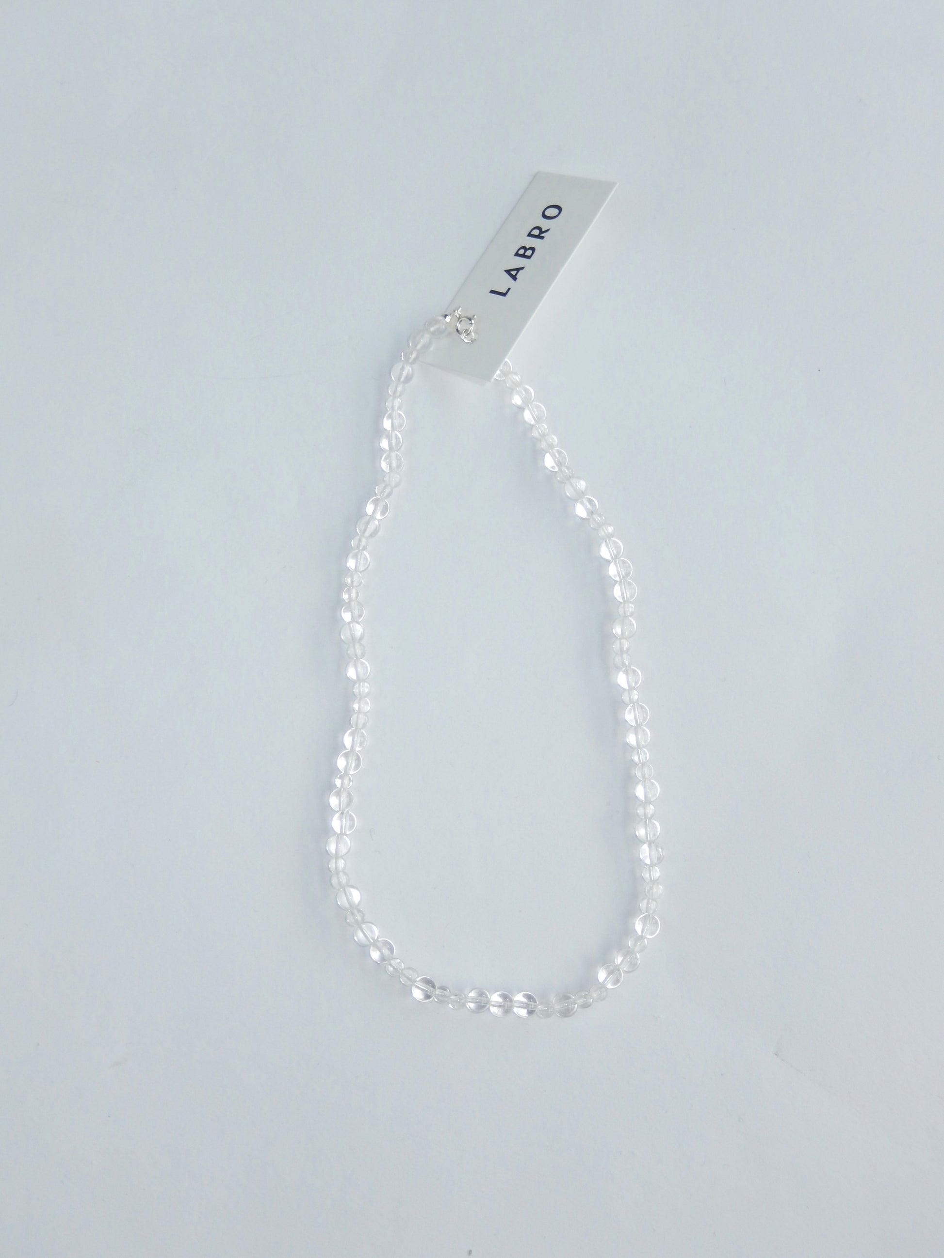 Clear Quartz is believed to create restorative energy and mental clarity. The pureness and clarity of the stone creates an innocent and clean style. Perfect to combine with Labro’s other gemstones like Angelite or Dalmatian.