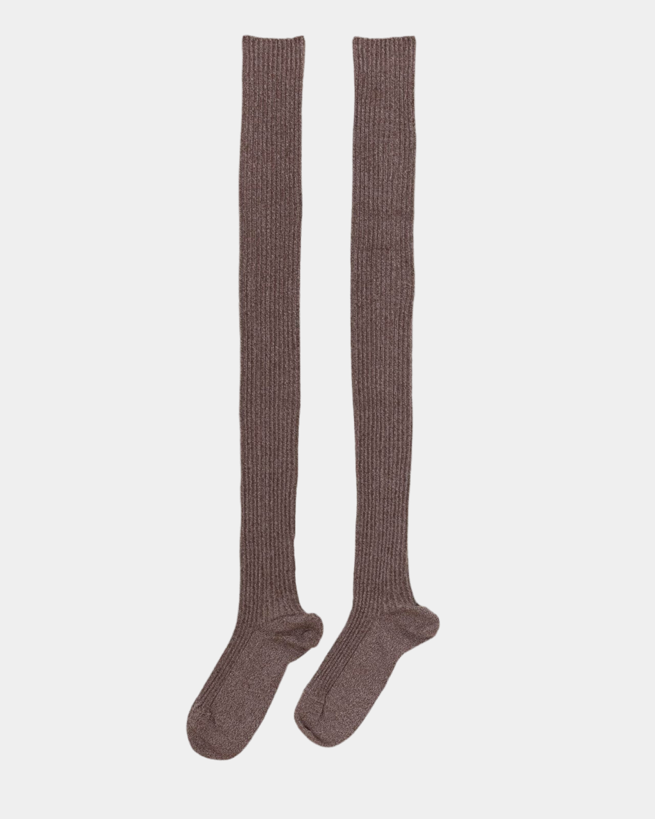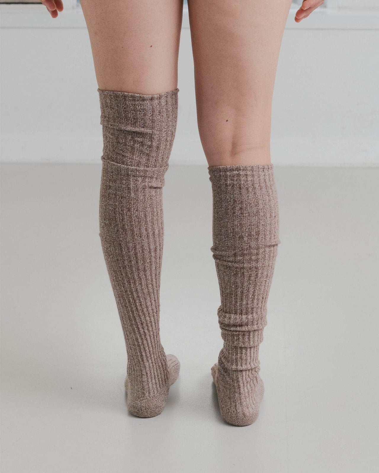Rib knit knee-high socks.