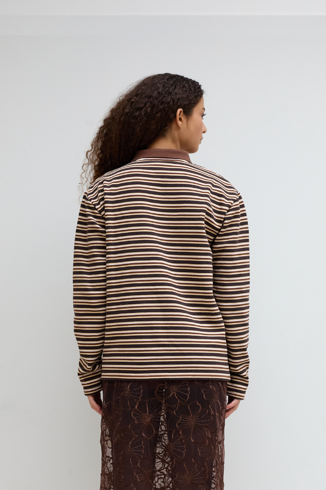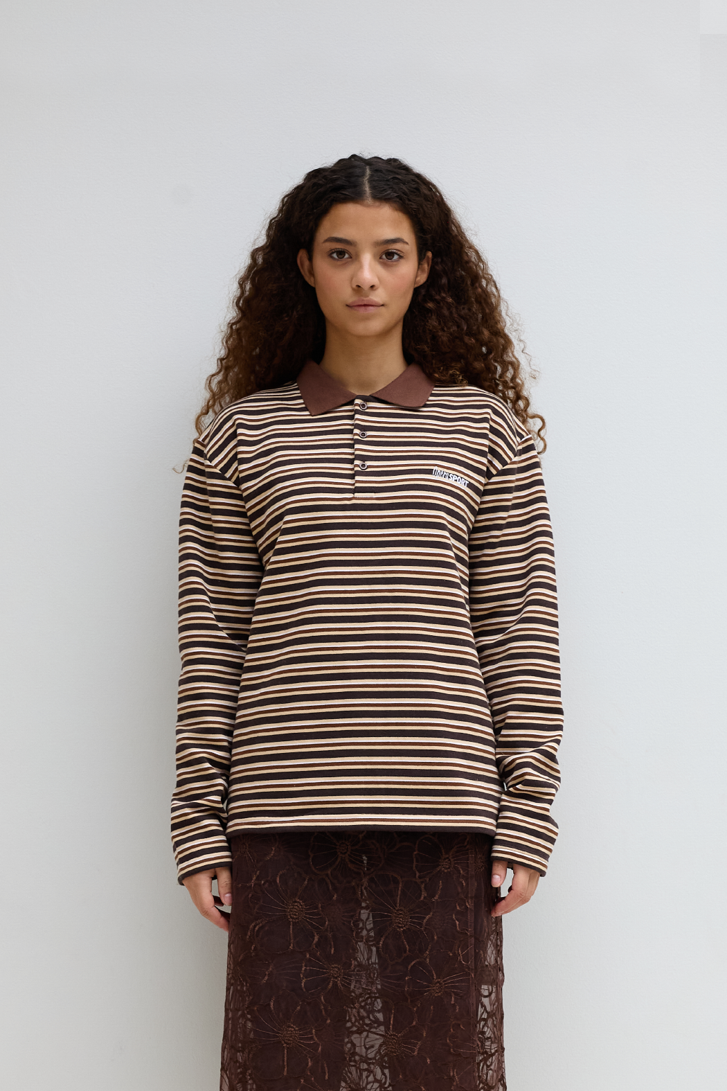 Our Roland Polo in brown is crafted from a soft blend of 65% organic cotton and 35% recycled polyester. The polo features a half button-up design with a placket, a collar, a straight hem, and OpéraSPORT branding on the chest. The striped Roland is warm and comfy, while offering a stylish look.