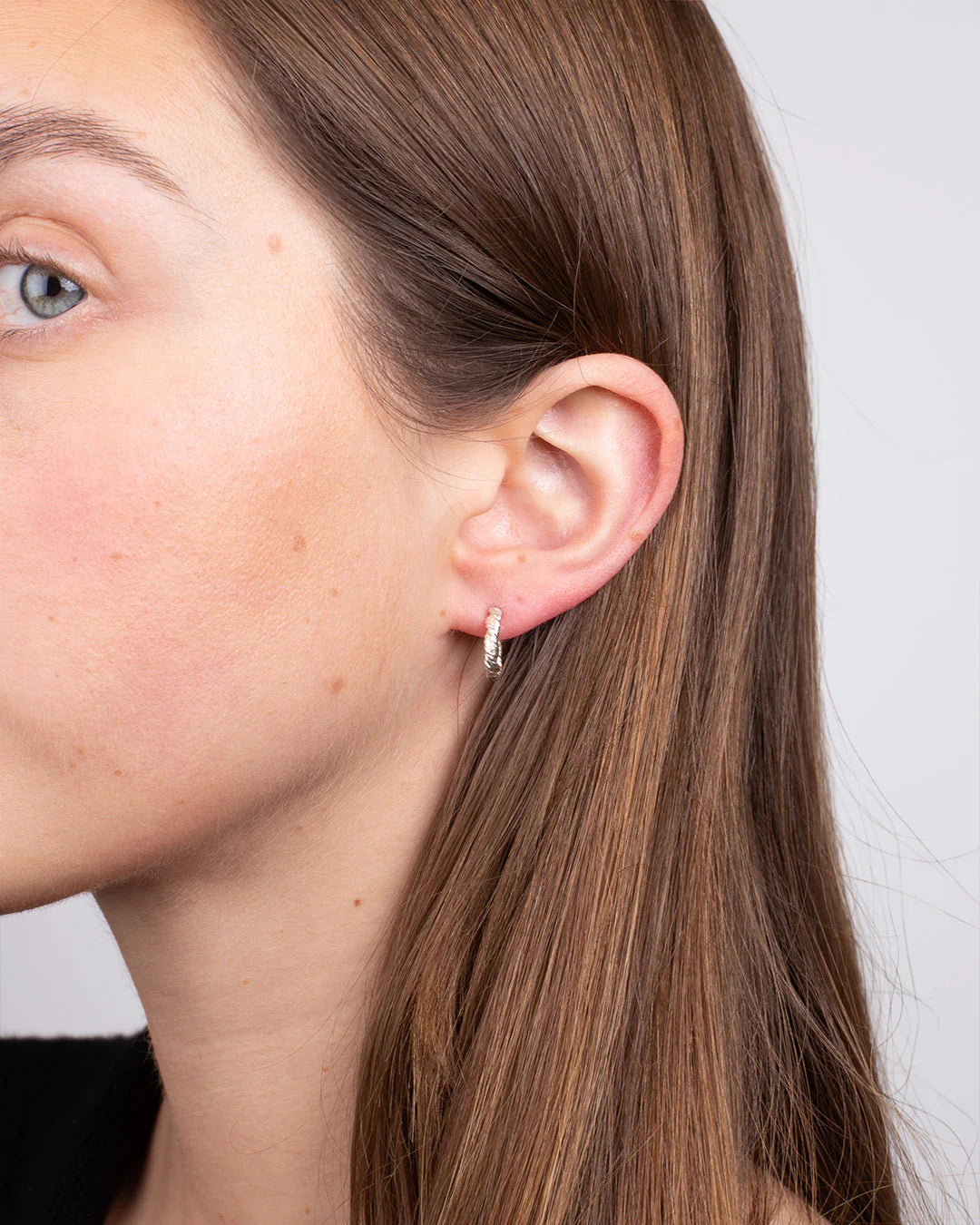 The ROPE HOOPS unites pure form with subtle movement. Its triple-twisted structure recalls the artistry of traditional ropework, lending the design a quiet sense of dynamism. Each earring includes a silver back. Handcrafted in Düsseldorf from sterling silver.
