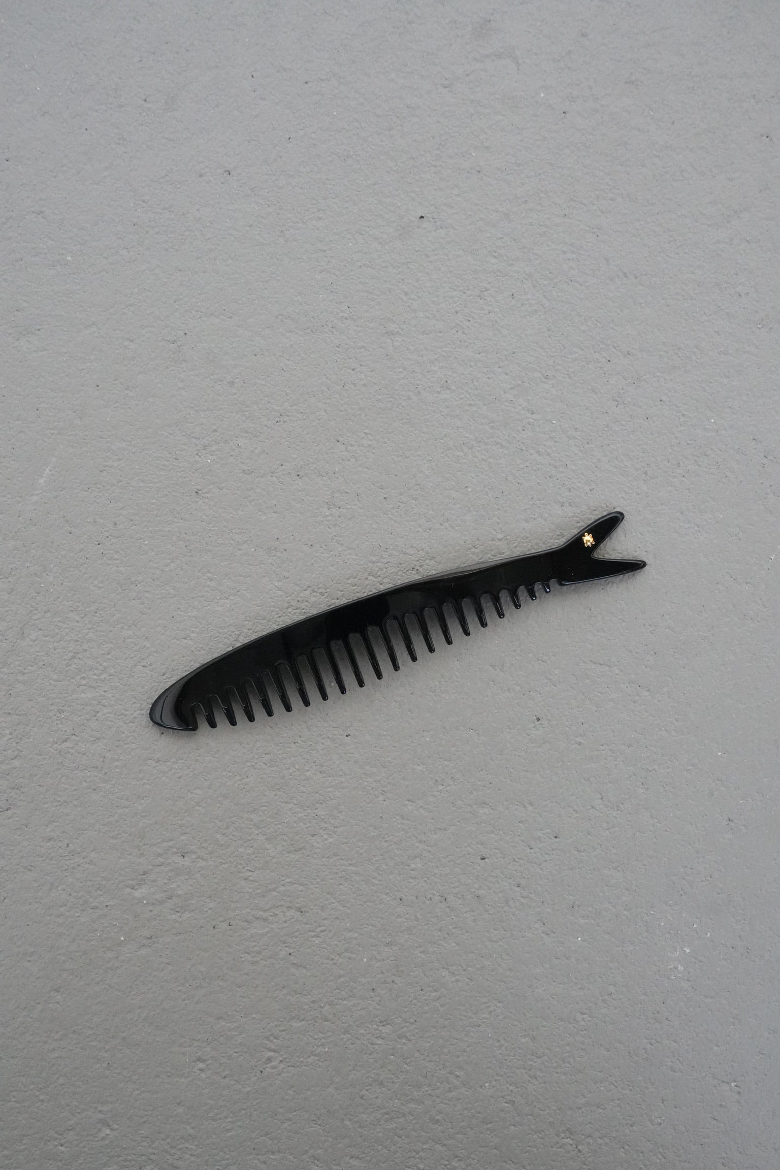 Each comb is individually shaped, adorned, and polished to a glossy shine, featuring a hand-applied signature Turtle logo. Includes a protective pouch made from deadstock croc-embossed leather.