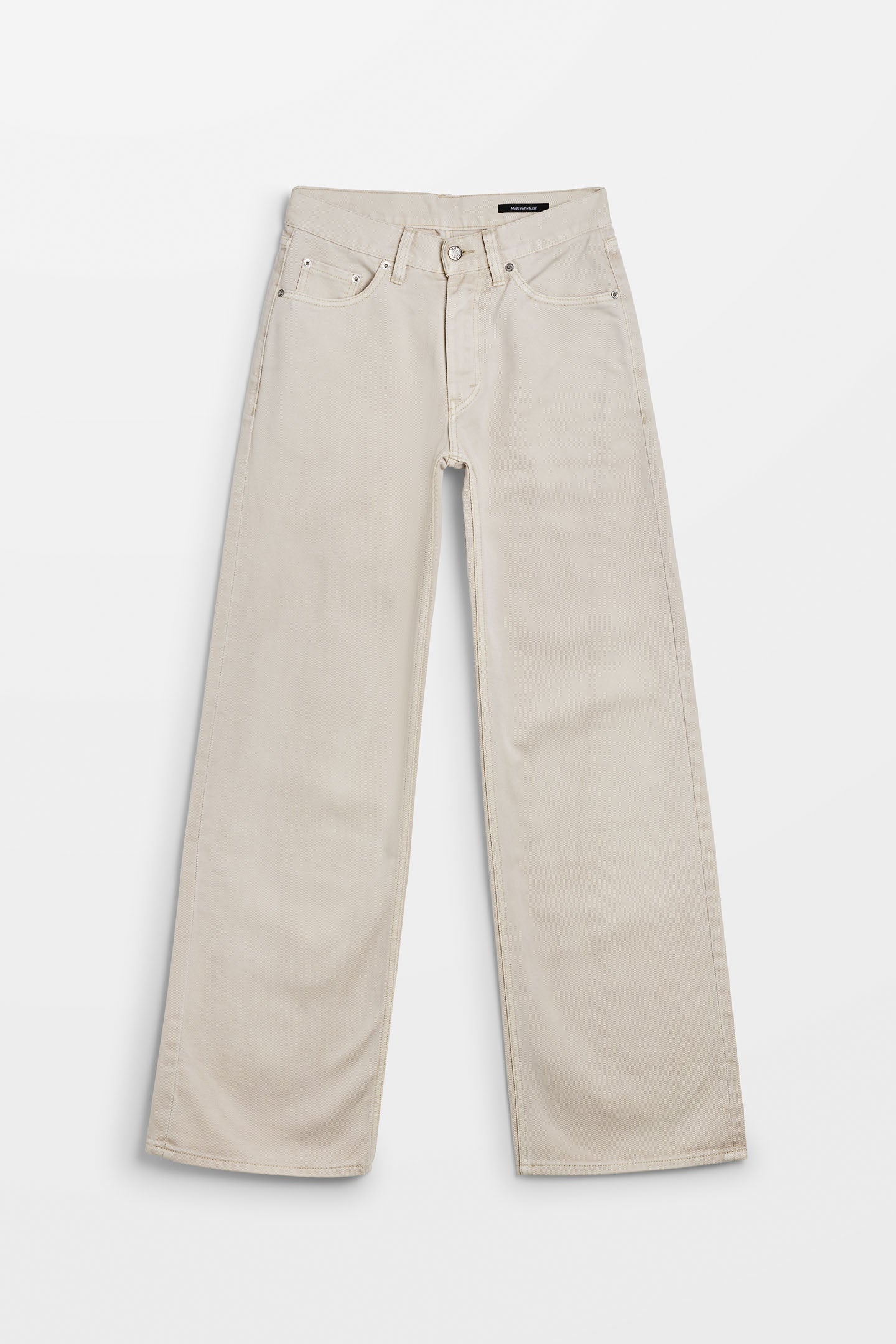 The low-waisted Shake Jeans feature a fitted upper and a straight wide leg. Here seen in an ecru garment dye. All HOPE denim washes are achieved with advanced techniques that drastically reduce the amount of energy, chemicals, and water used.