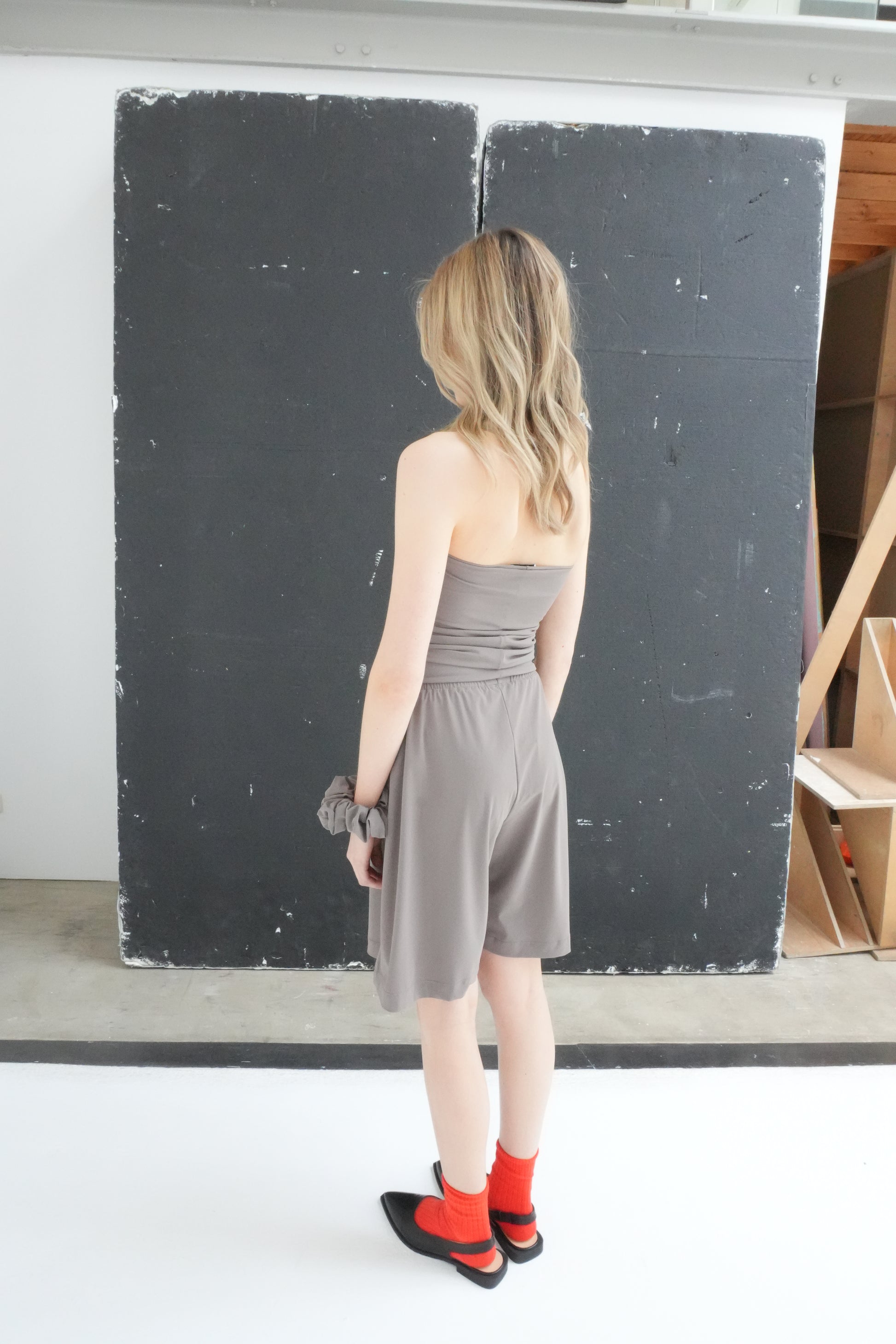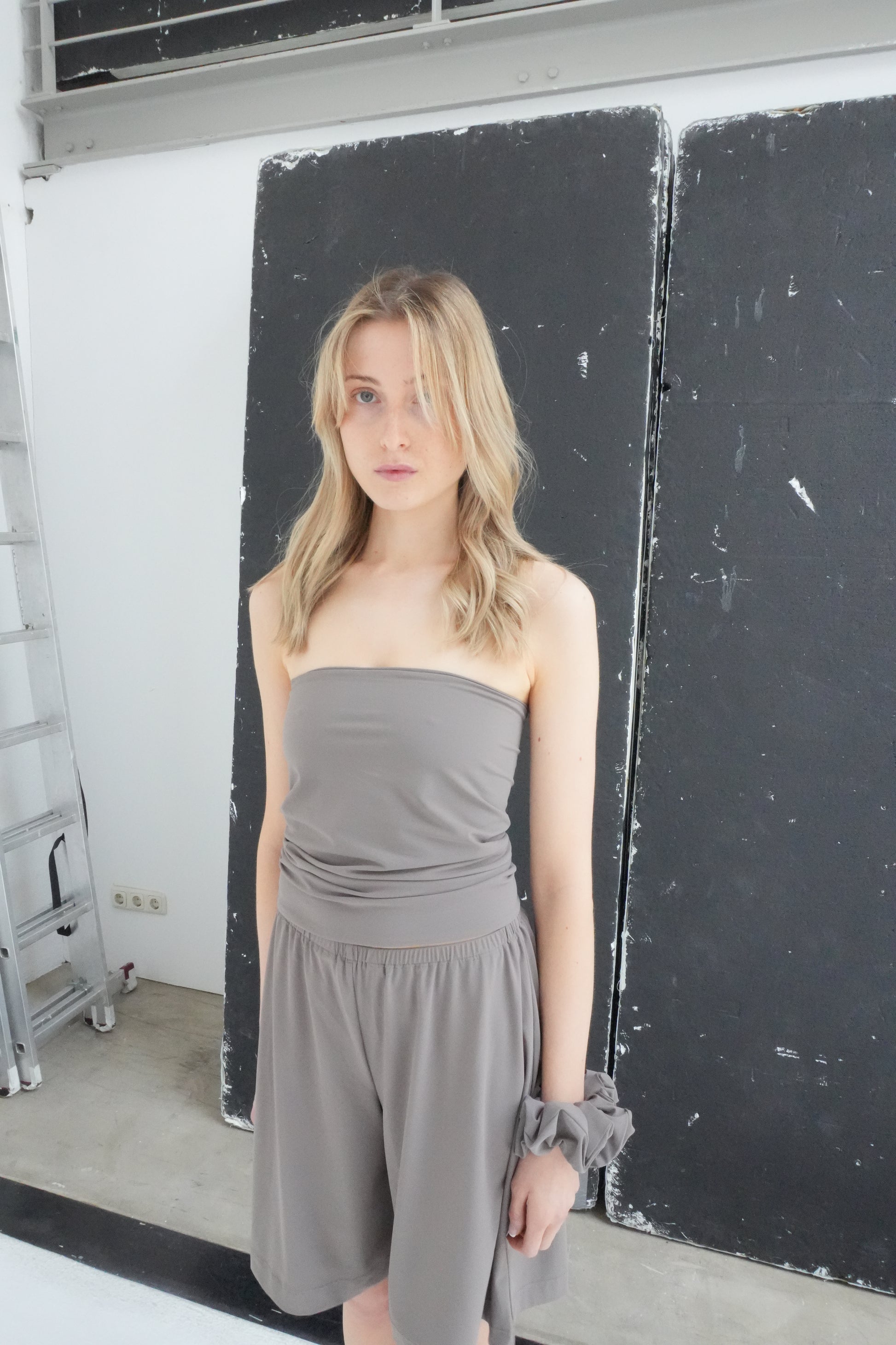 Strapless tube top, featuring double-layered construction for added support and encased elastic for a secure fit. Crafted from comfortable, responsibly sourced Italian stretch fabric, this versatile piece is both flattering and easy to style. Pair it with our matching straight-fit pants for a chic and effortless ensemble.