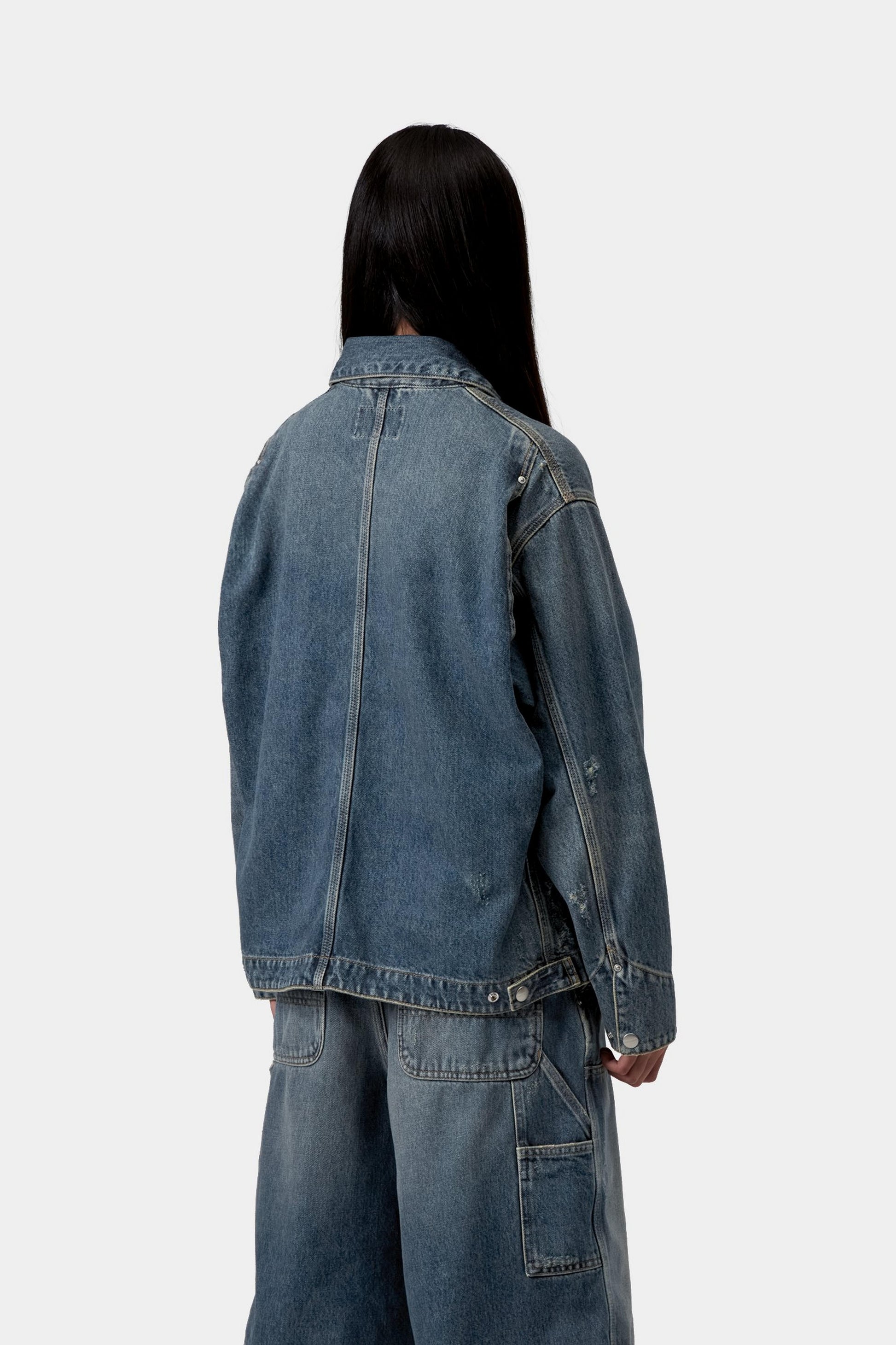 The Women's OG Arctic Jacket is made of a heavy, unlined cotton denim. The style is cut in Carhartt WIP's OG Loose Fit, which is slightly wider and more cast. The hem and cuffs can be adjusted. A double-layer front, multiple pockets and triple stitching provide functional details. A woven square label completes the design.