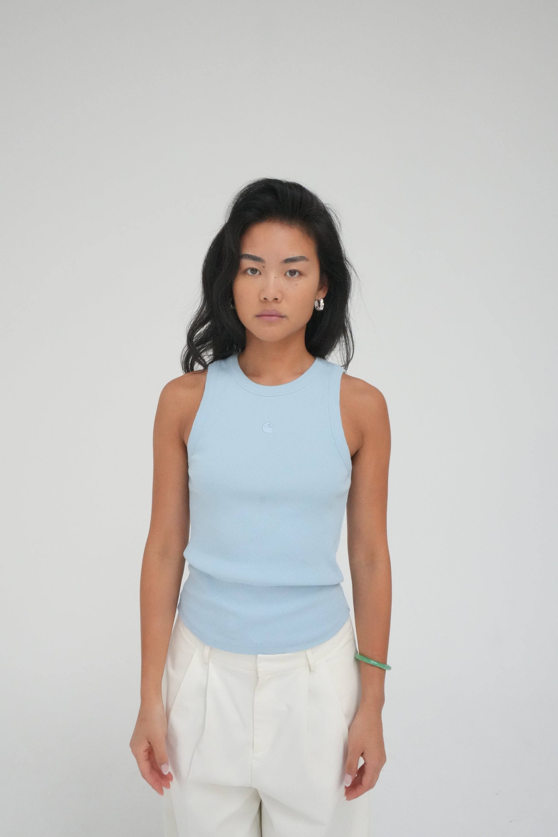 The Women's Philips A-Shirt has a rib-knit design and is made from midweight stretch-cotton yarn. The item also has a racer back silhouette. An embroidered 'C' Logo appears on the front.